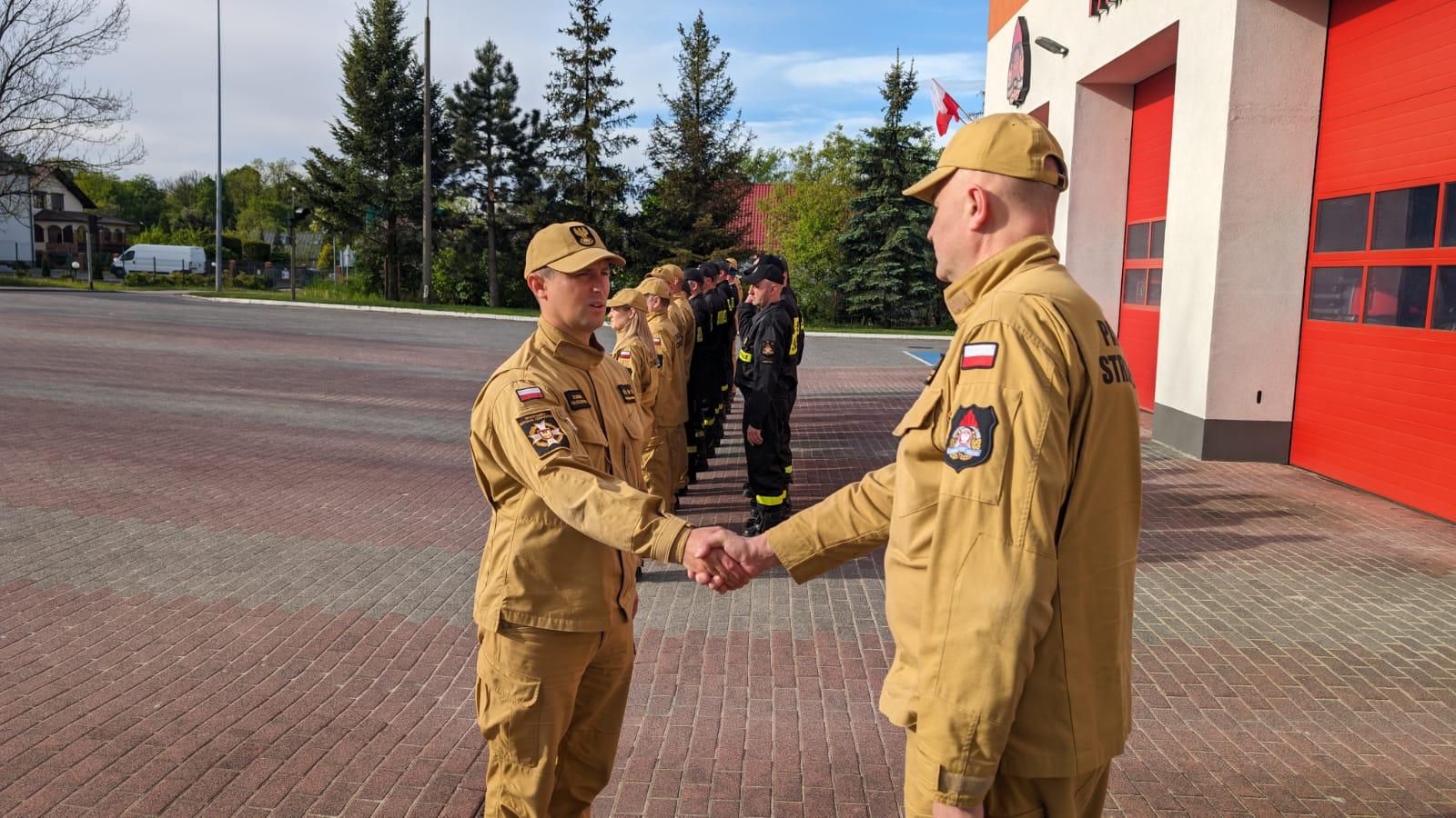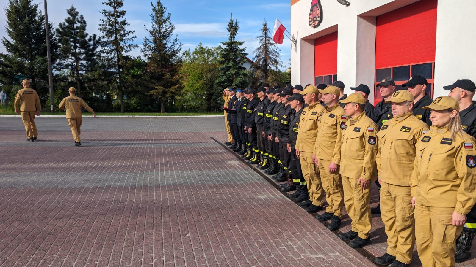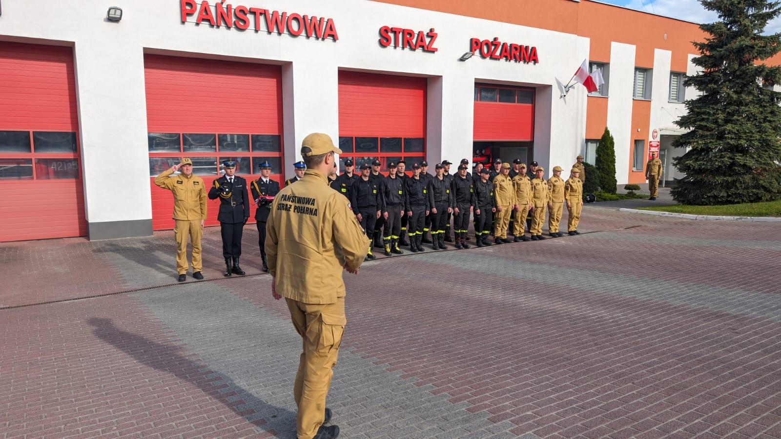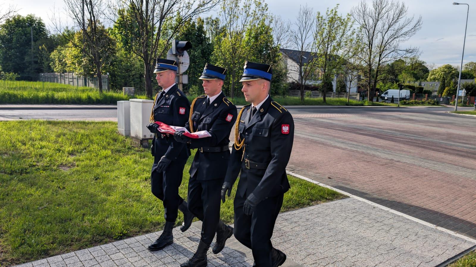 O godz. 8 w Komendzie Powiatowej PSP w Chrzanowie strażacy pełniący służbę w tym dniu podczas uroczystej zbiórki wciągnęli flagę na maszt.