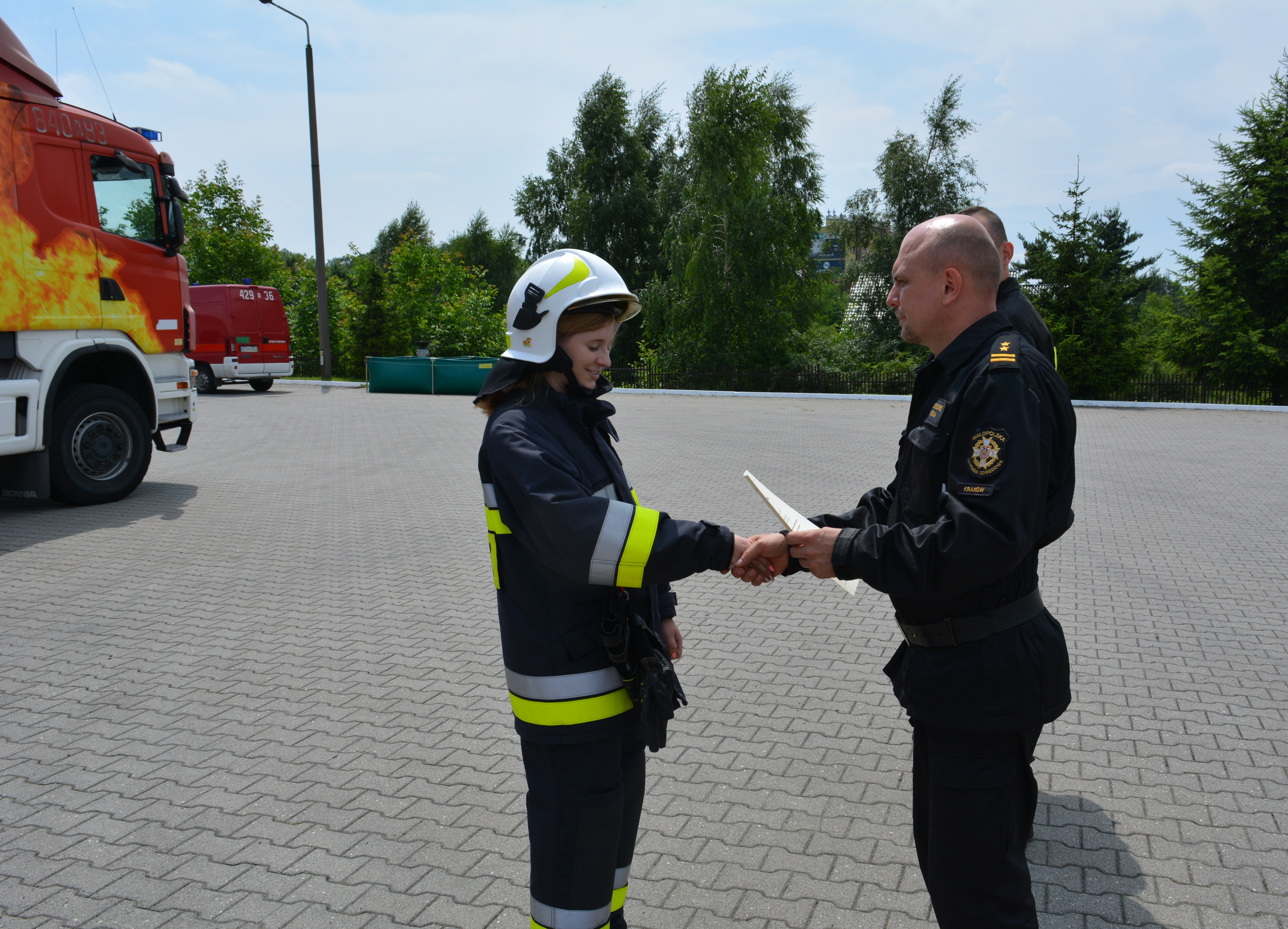 Egzamin składający się z części teoretycznej (pisemny test wiedzy) i praktycznej odbył się na terenie Komendy Powiatowej Państwowej Straży Pożarnej w Chrzanowie.