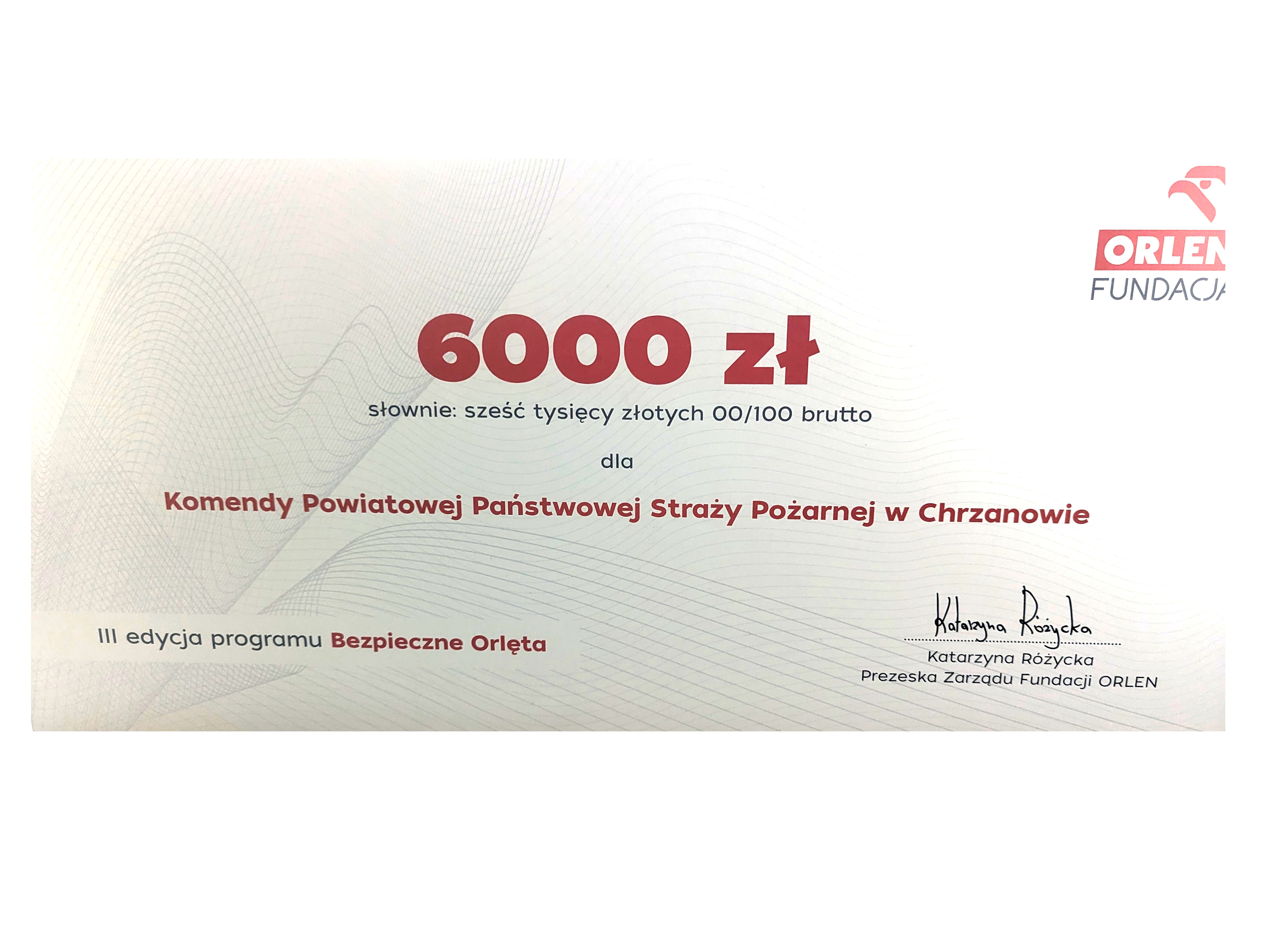 Komenda Powiatowa Państwowej Straży Pożarnej w Chrzanowie została laureatem III Edycji programu grantowego „Bezpieczne Orlęta” organizowanego przez Fundację Orlen.