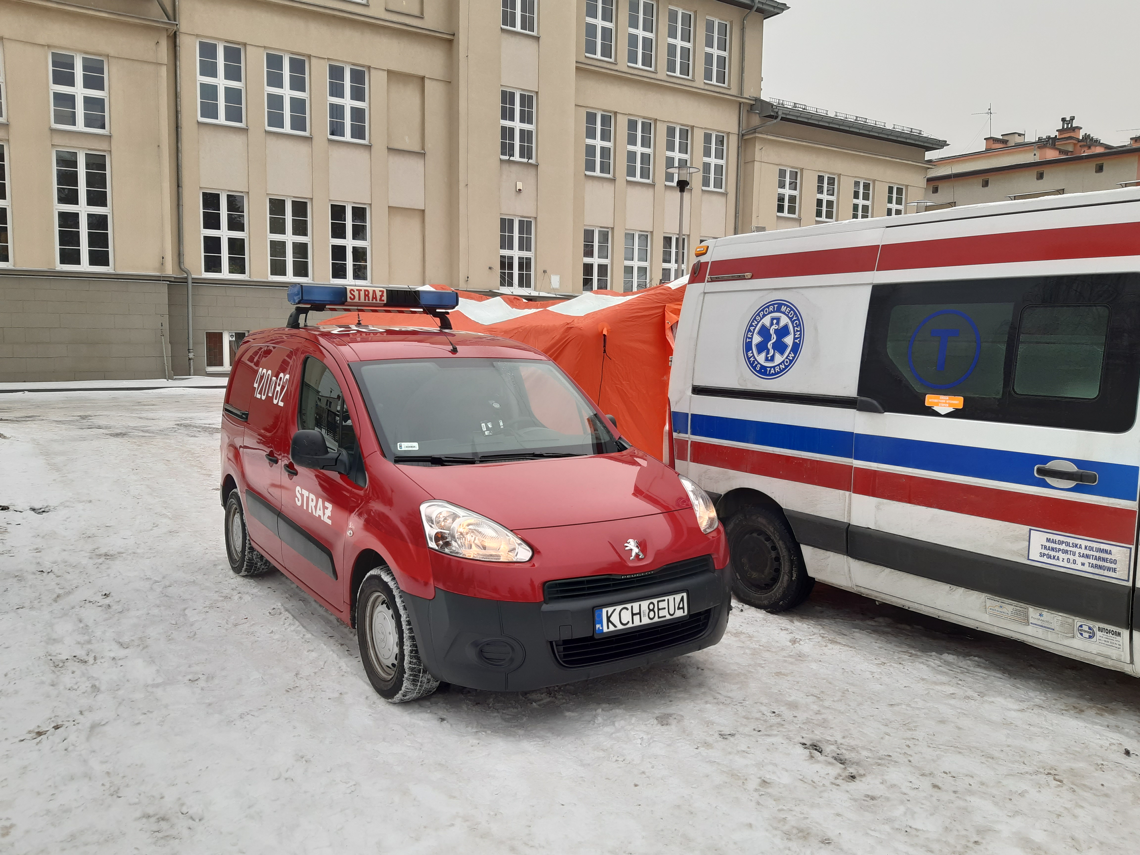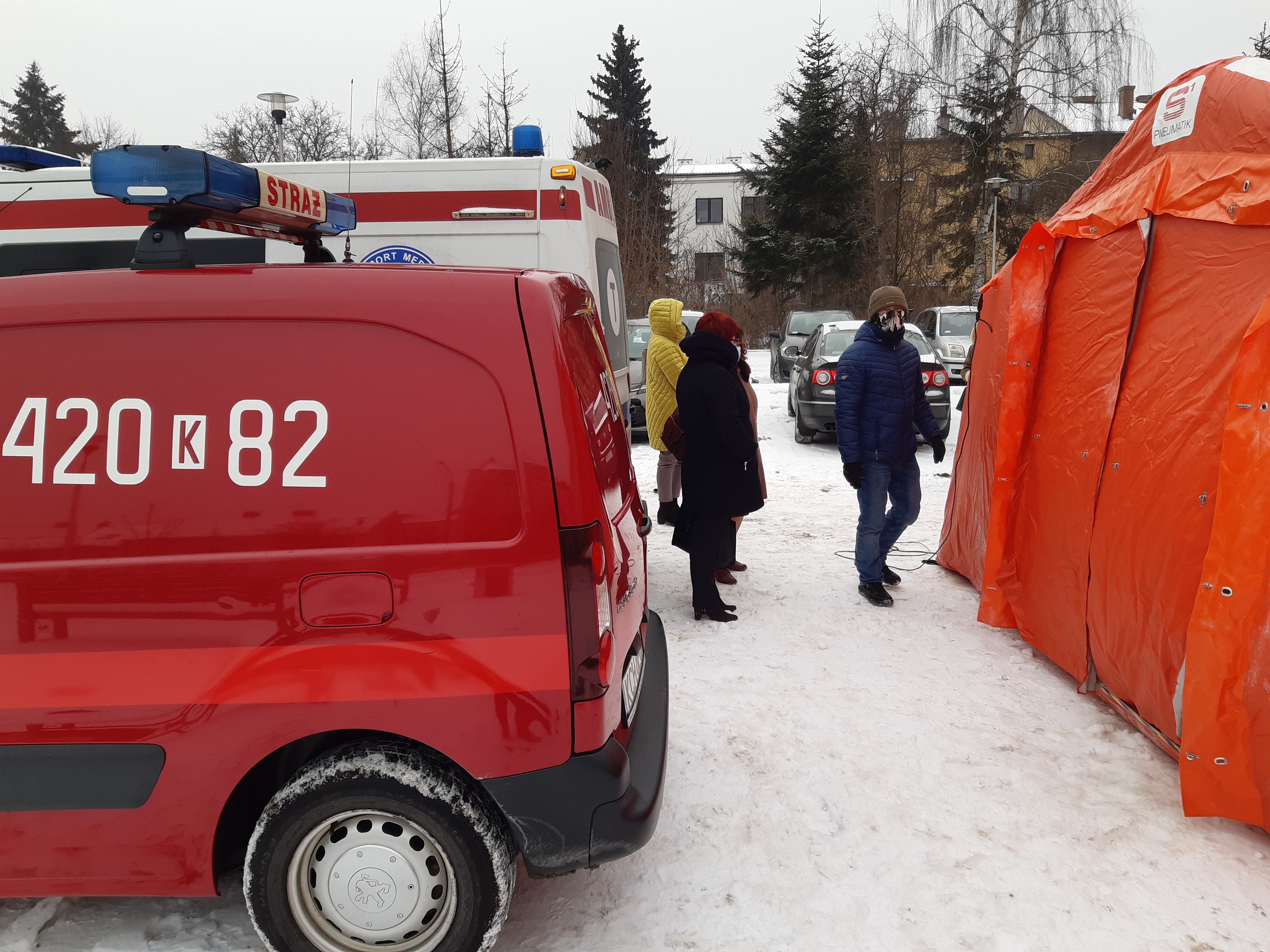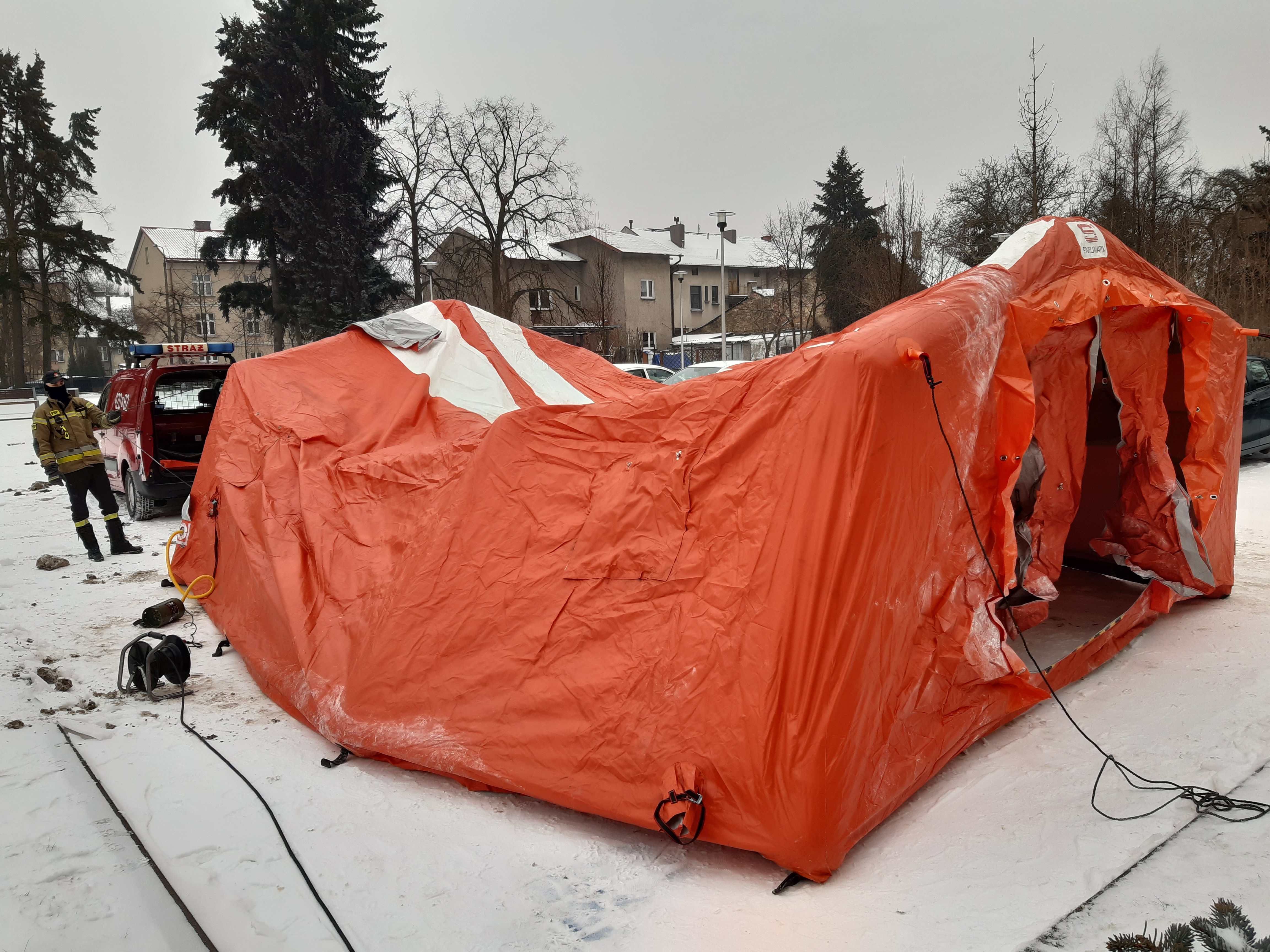 W związku z tym chrzanowscy strażacy 10 lutego 2021 r. pomagali w utworzeniu punktu pobrań wymazów w Chrzanowie. Działania strażaków polegały m.in. na rozstawieniu namiotu pneumatycznego oraz pomoc w wyposażeniu go w środki techniczne.