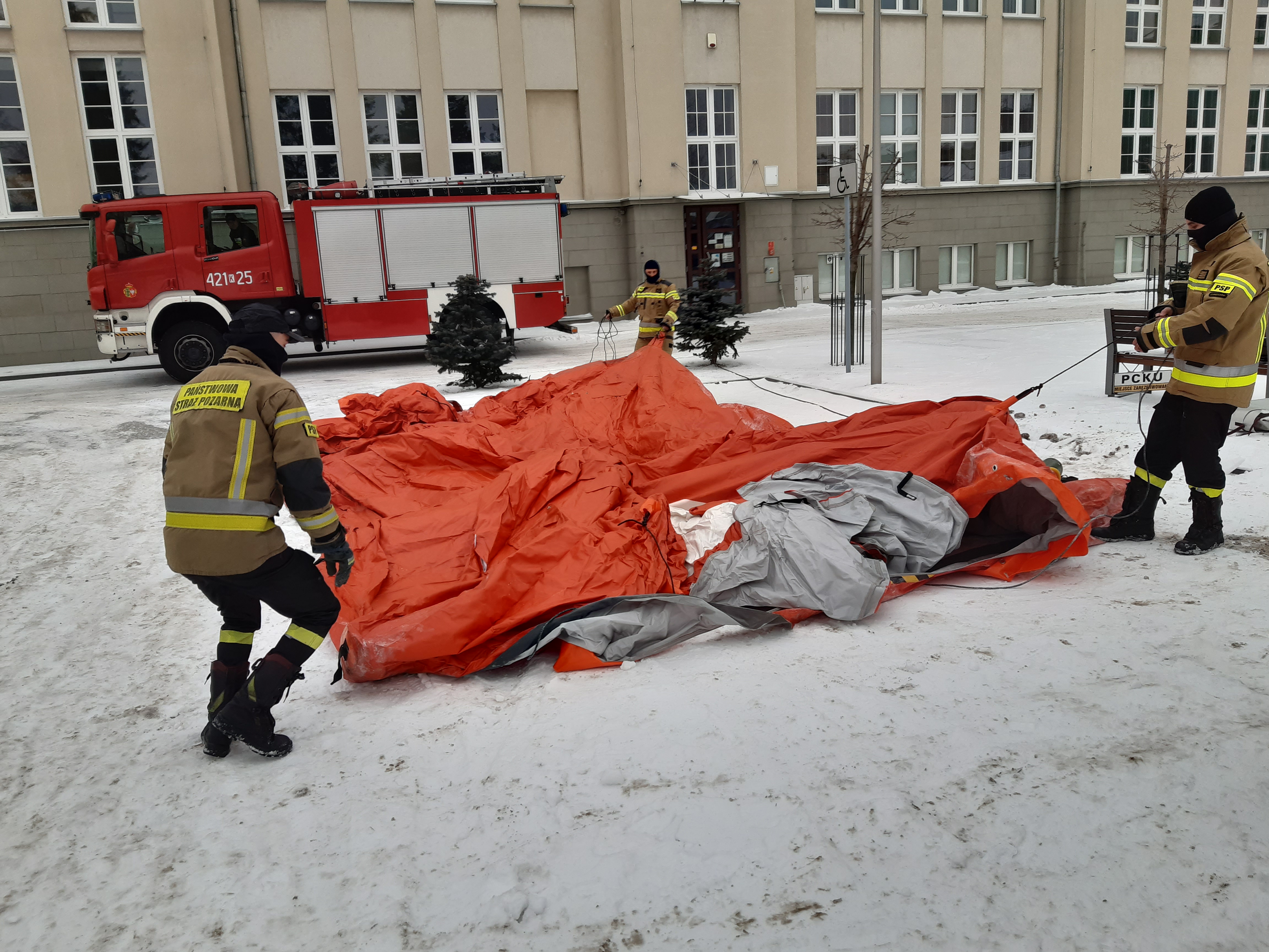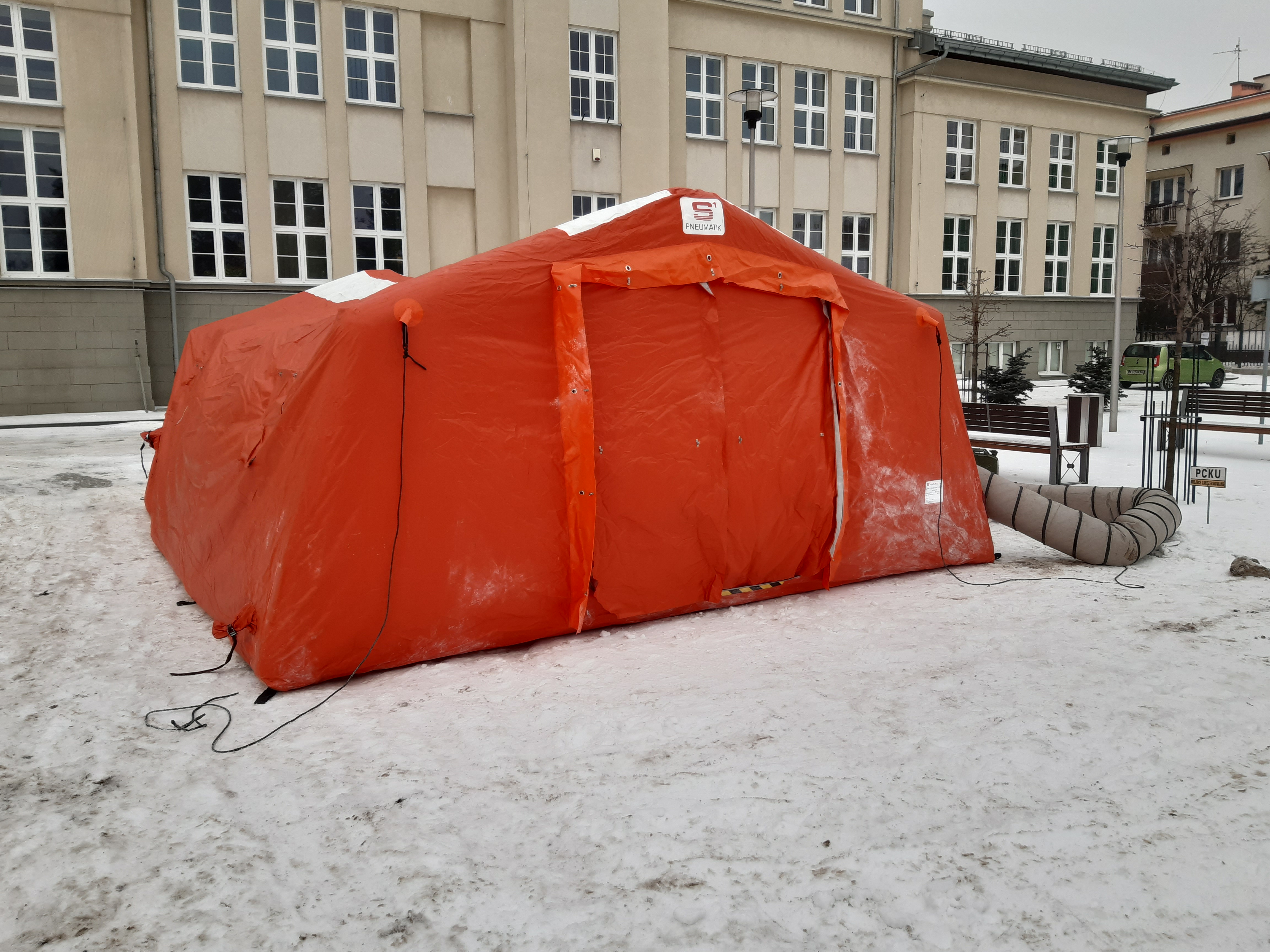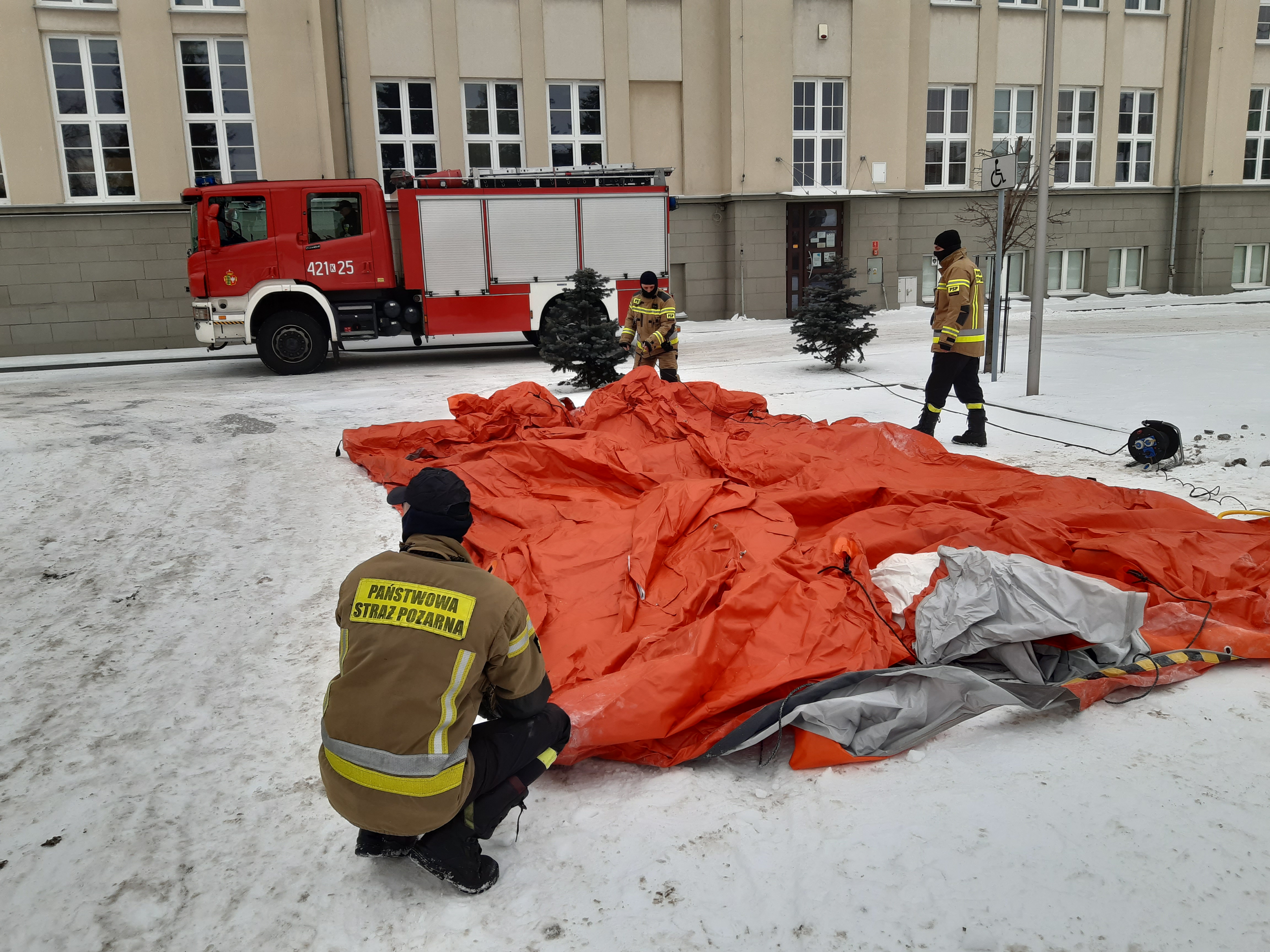 W związku z tym chrzanowscy strażacy 10 lutego 2021 r. pomagali w utworzeniu punktu pobrań wymazów w Chrzanowie. Działania strażaków polegały m.in. na rozstawieniu namiotu pneumatycznego oraz pomoc w wyposażeniu go w środki techniczne.