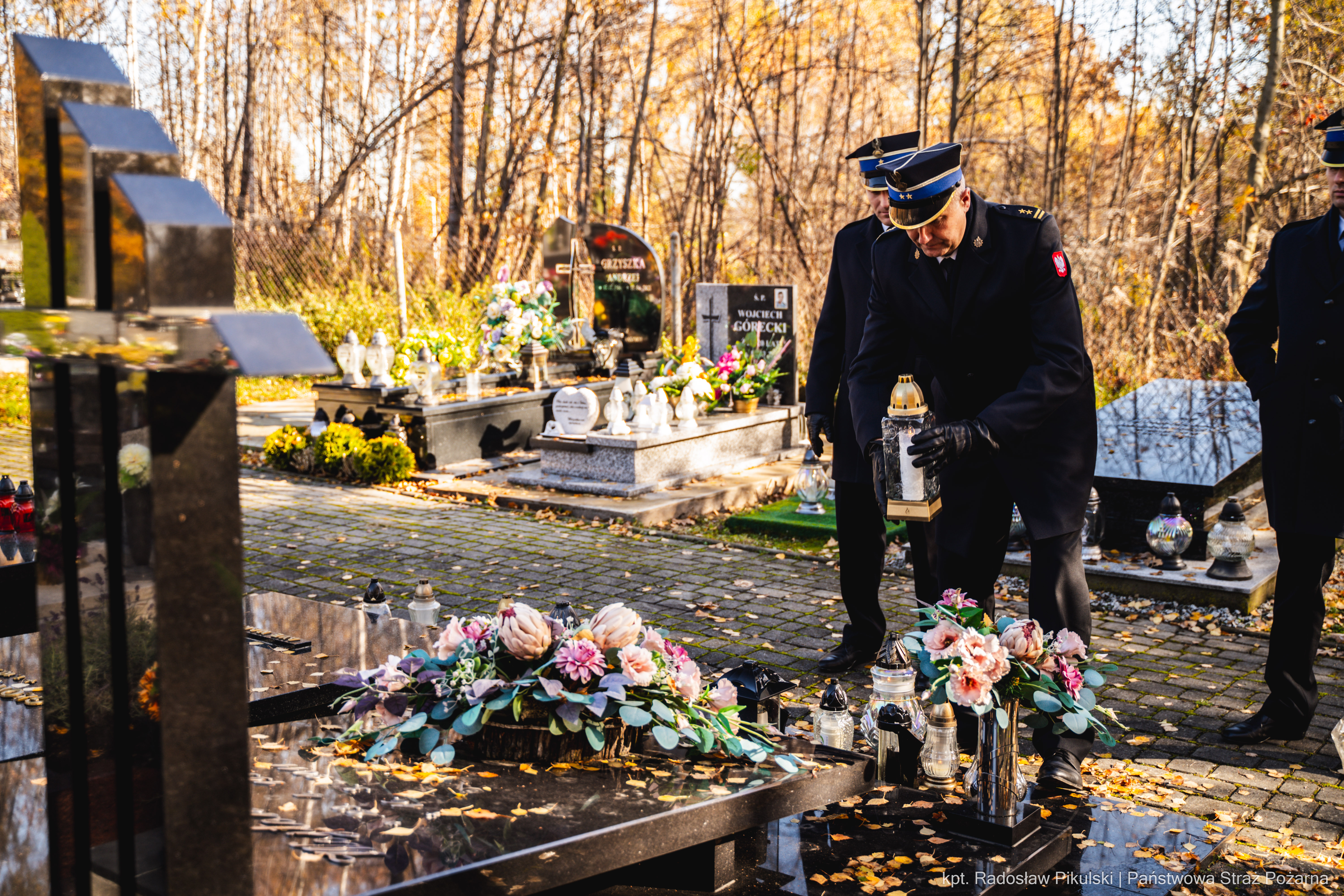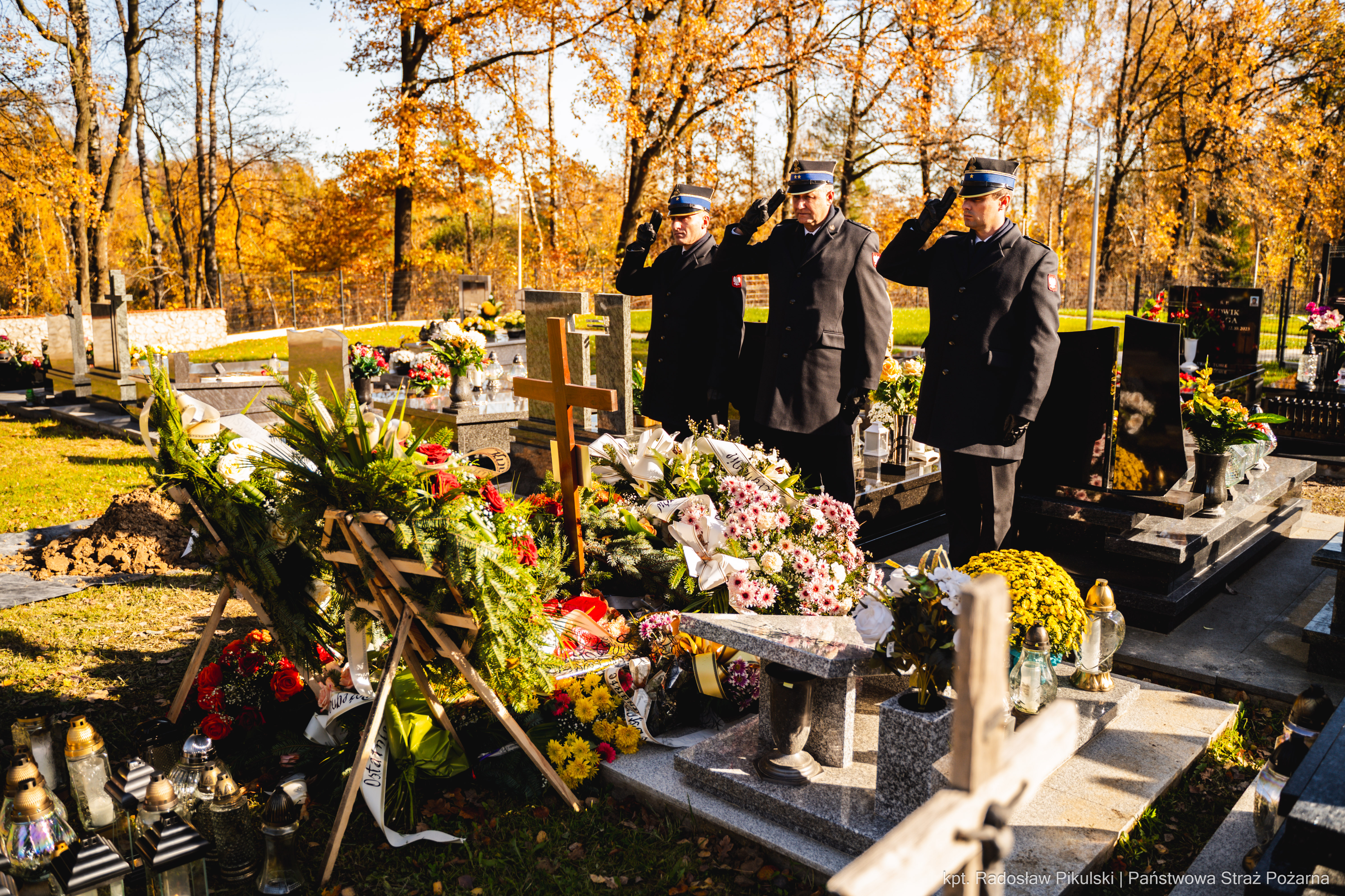 W przeddzień Uroczystości Wszystkich Świętych, funkcjonariusze Komendy Powiatowej Państwowej Straży Pożarnej w Chrzanowie uczcili pamięć zmarłych kolegów. Delegacja z KP PSP Chrzanów odwiedziła groby druhów i funkcjonariuszy, oddając im honory oraz zapalając symboliczne znicze. To wyraz głębokiego szacunku i wdzięczności za ich służbę i poświęcenie. Pamiętajmy o wszystkich, którzy odeszli na „wieczną służbę”. Stanowią oni nierozerwalną część naszej strażackiej rodziny, a ich dziedzictwo jest fundamentem naszej codziennej pracy.