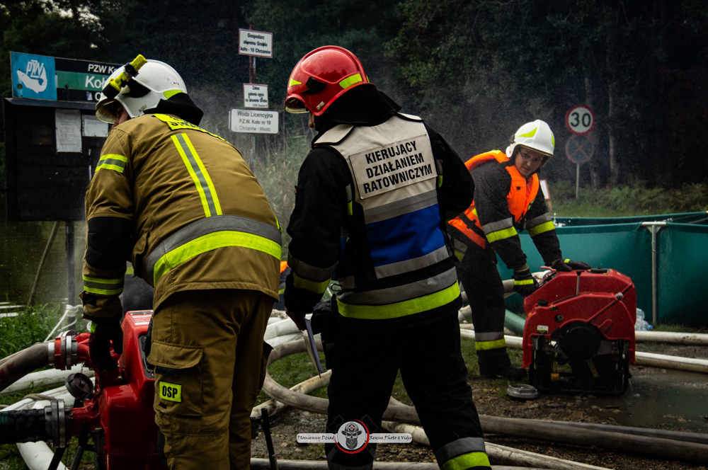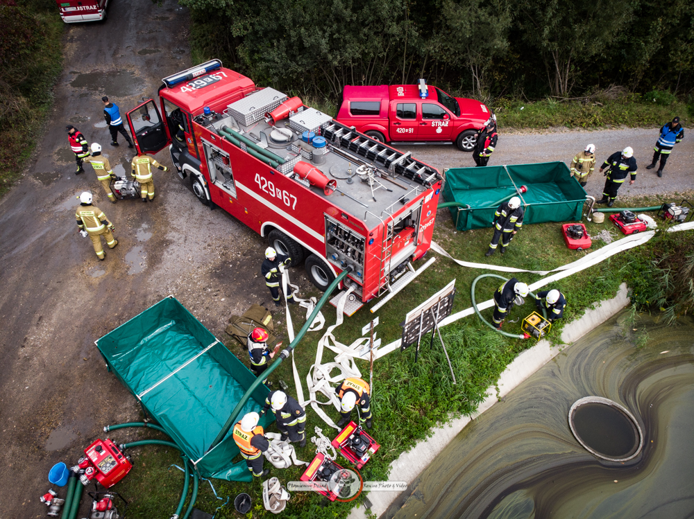 Celem ćwiczeń było zorganizowanie magistrali wodnej składającej się z dwóch linii wężowych W- 110 o długości min. 300 m, zapewnienie bufora wodnego o pojemności min. 10 m3 i zapewnienie wydatku wodnego min 4000 litrów/minutę. Ćwiczenia zorganizowali funkcjonariusze wydziału ds. operacyjno-szkoleniowego KP PSP w Chrzanowie.