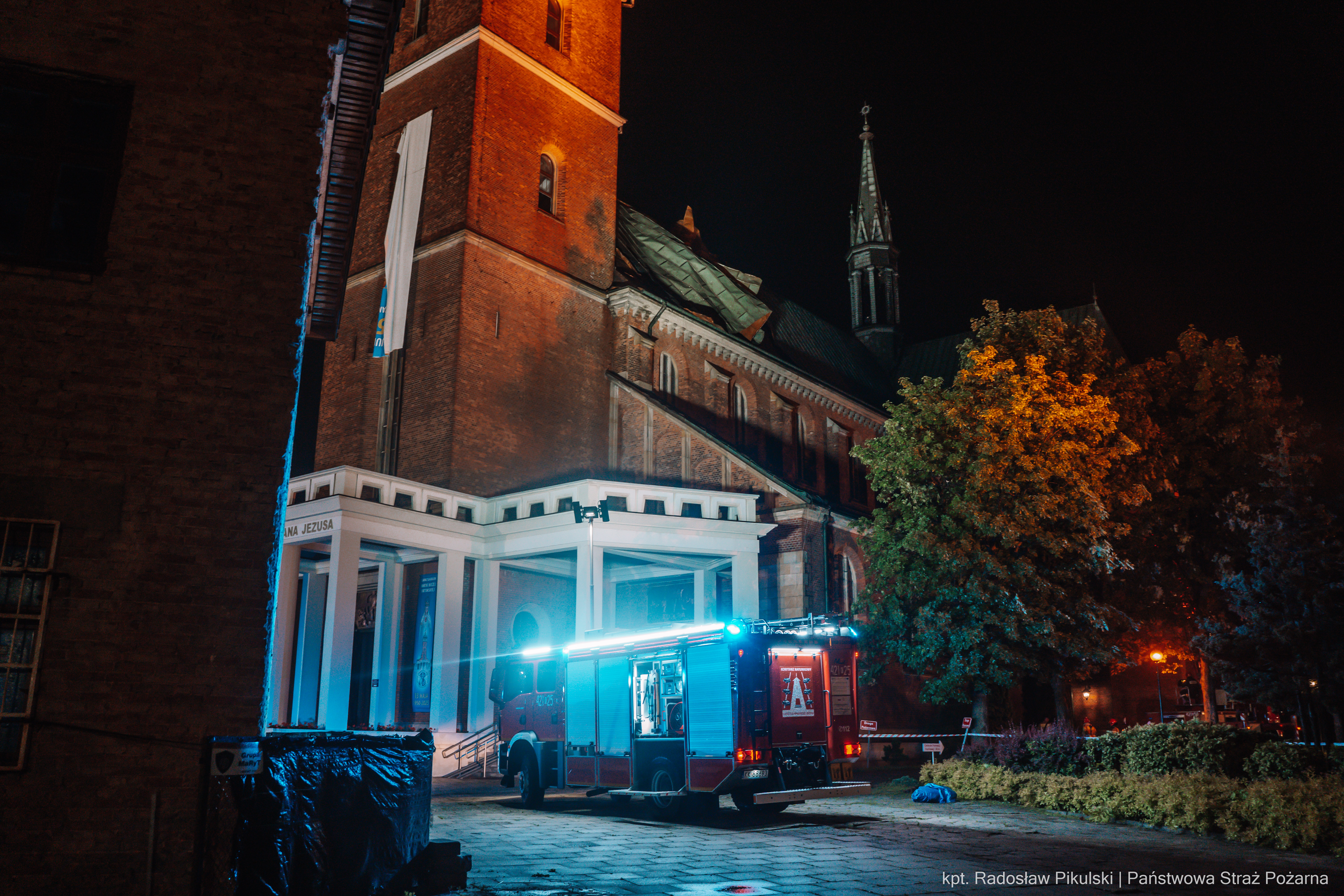 - Uszkodzony dach w Bazylice Mniejszej NSPJ w Trzebini. Silny wiatr uszkodził pokrycie dachu z blachy miedzianej na powierzchni ok. 300m2. Wnętrze Bazyliki nie zostało naruszone.