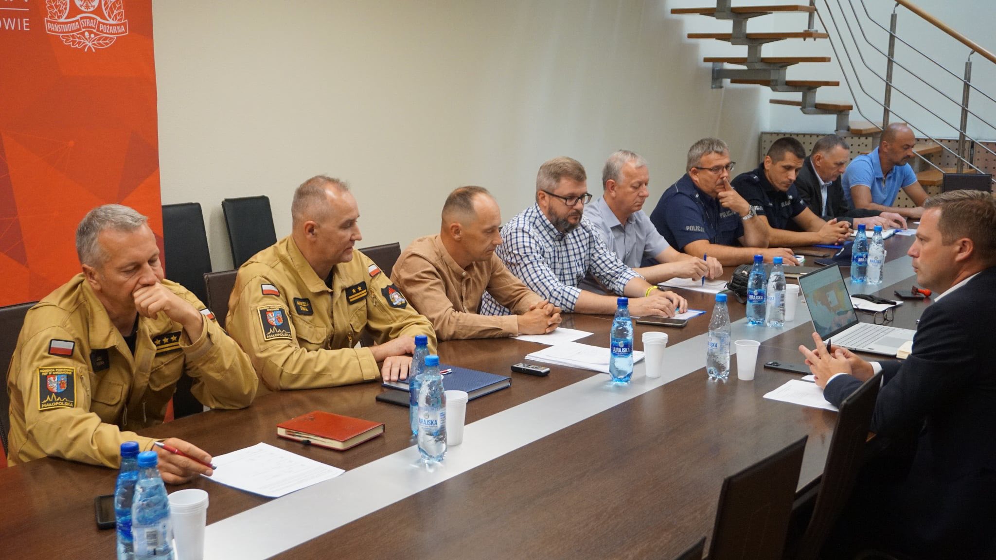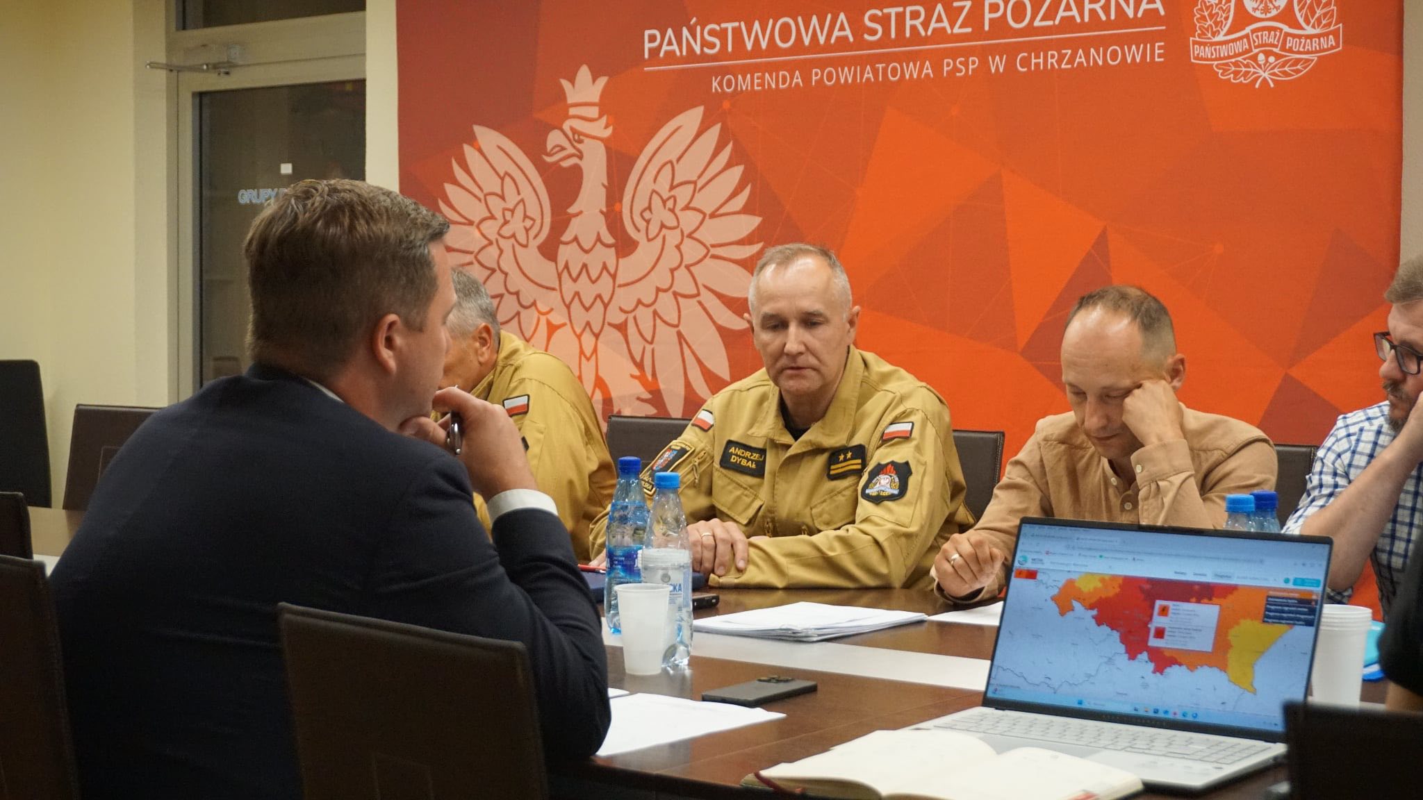 W dniu 08.07.2025 r. w Sali Sztabowej Komendy Powiatowej Państwowej Straży Pożarnej w Chrzanowie Starosta Chrzanowski – Bartłomiej Gębala zwołał posiedzenie Powiatowego Zespołu Zarządzania Kryzysowego. W spotkaniu udział wzięli przedstawiciele samorządów gminnych, Policji i Państwowej Straży Pożarnej. W trakcie spotkania został przedstawiony stan gotowości poszczególnych służb i samorządów na możliwe zdarzenia związane z likwidacją skutków wystąpienia niżu genueńskiego. Zweryfikowano również stany magazynowe na wypadek zagrożenia powodziowego.
