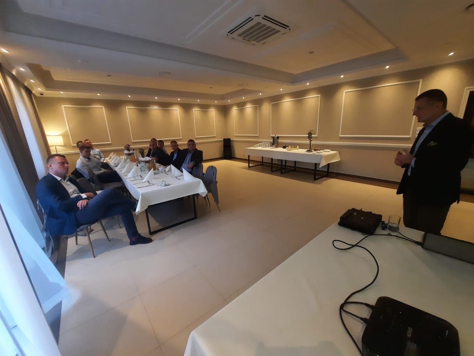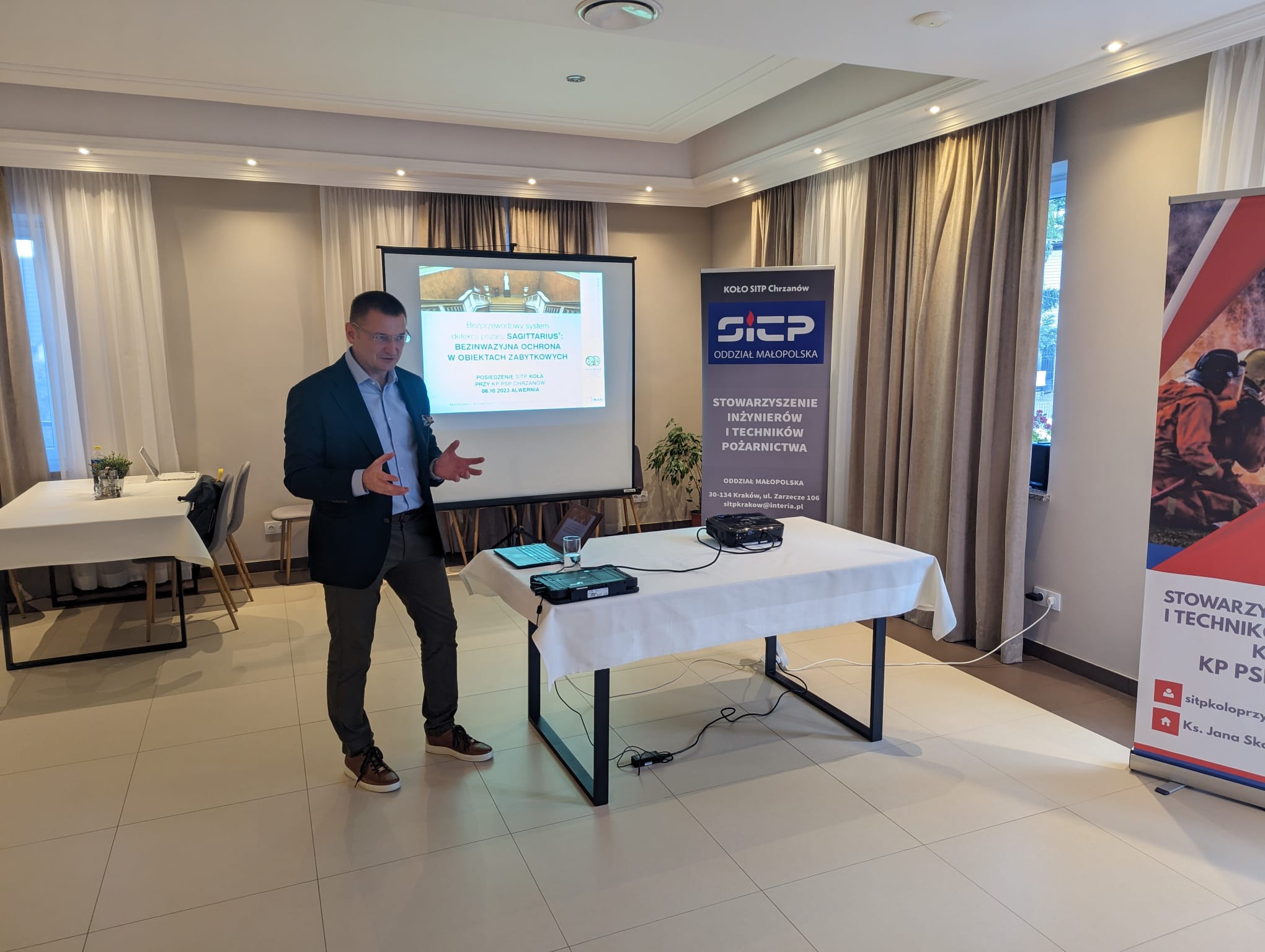 Posiedzenie zaszczycił swoją obecnością p. Arkadiusz Waligóra z firmy CREATIO INDUSTRY, który w części merytorycznej spotkania omówił zagadnienie dotyczące „Systemu sygnalizacji pożaru w obiektach zabytkowych”.