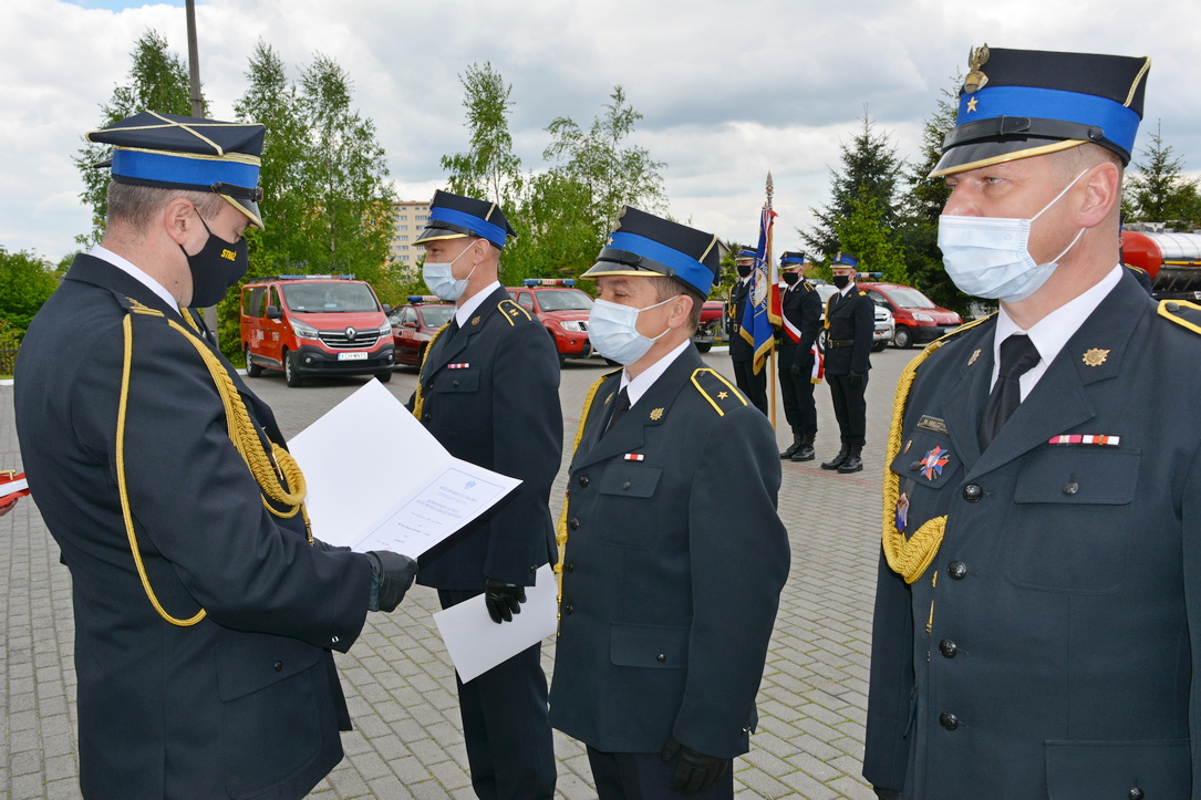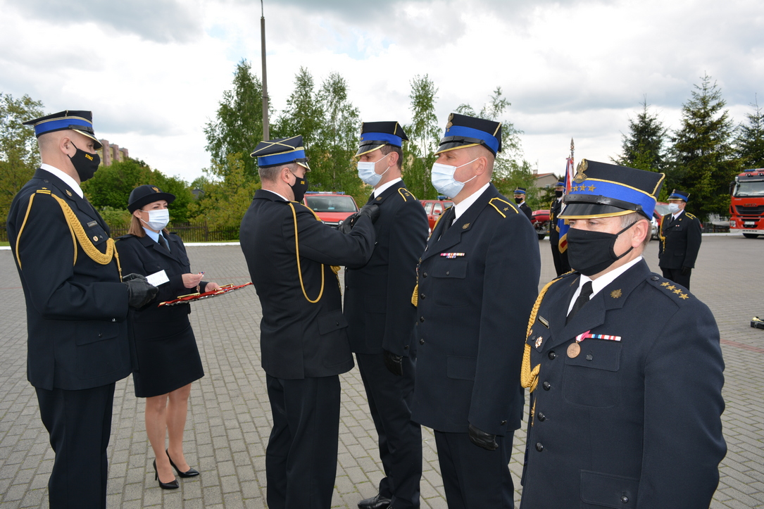 - młodszego ogniomistrza - st. sekc. Maciej Liszka, st. sekc. Przemysław Marchaj, st.sekc. Tobiasz Staroń. Odznaczenia i awanse wręczył strażakom Małopolski Komendant Wojewódzki Państwowej Straży Pożarnej st. bryg. Piotr Filipek w asyście Komendanta Powiatowego Państwowej Straży Pożarnej w Chrzanowie mł. bryg. Andrzeja Dybała.