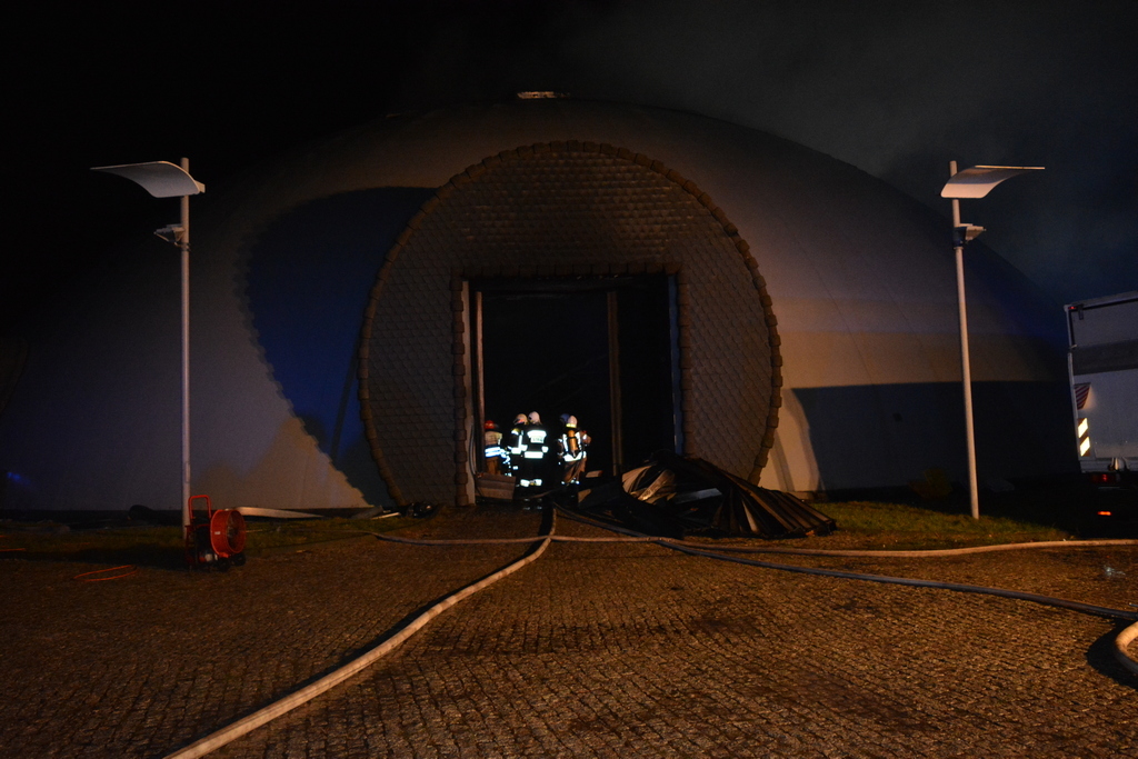 Po przybyciu na miejsce zdarzenia i przeprowadzeniu rozpoznania stwierdzono objęty pożarem w całości budynek kopuły na terenie kompleksu obiektów Alvernia Planet. Ogień wydostawał się z jednej bramy wjazdowej oraz poprzez otwory wentylacyjne i klapy oddymiające zlokalizowane w szczycie sklepienia kopuły. Uzyskano informację, że z kopuły objętej pożarem ewakuowały się wszystkie osoby. Pożar ugaszono przy pomocy 4 prądów wody. W działaniach brało udział 26 zastępów Państwowej Straży Pożarnej i Ochotniczej Straży Pożarnej z terenu powiatu chrzanowskiego i krakowskiego wraz z Grupą Operacyjna Komendanta Powiatowego PSP w Chrzanowie i Oficerem Operacyjnym Komendanta Wojewódzkiego Państwowej Straży Pożarnej w Krakowie.