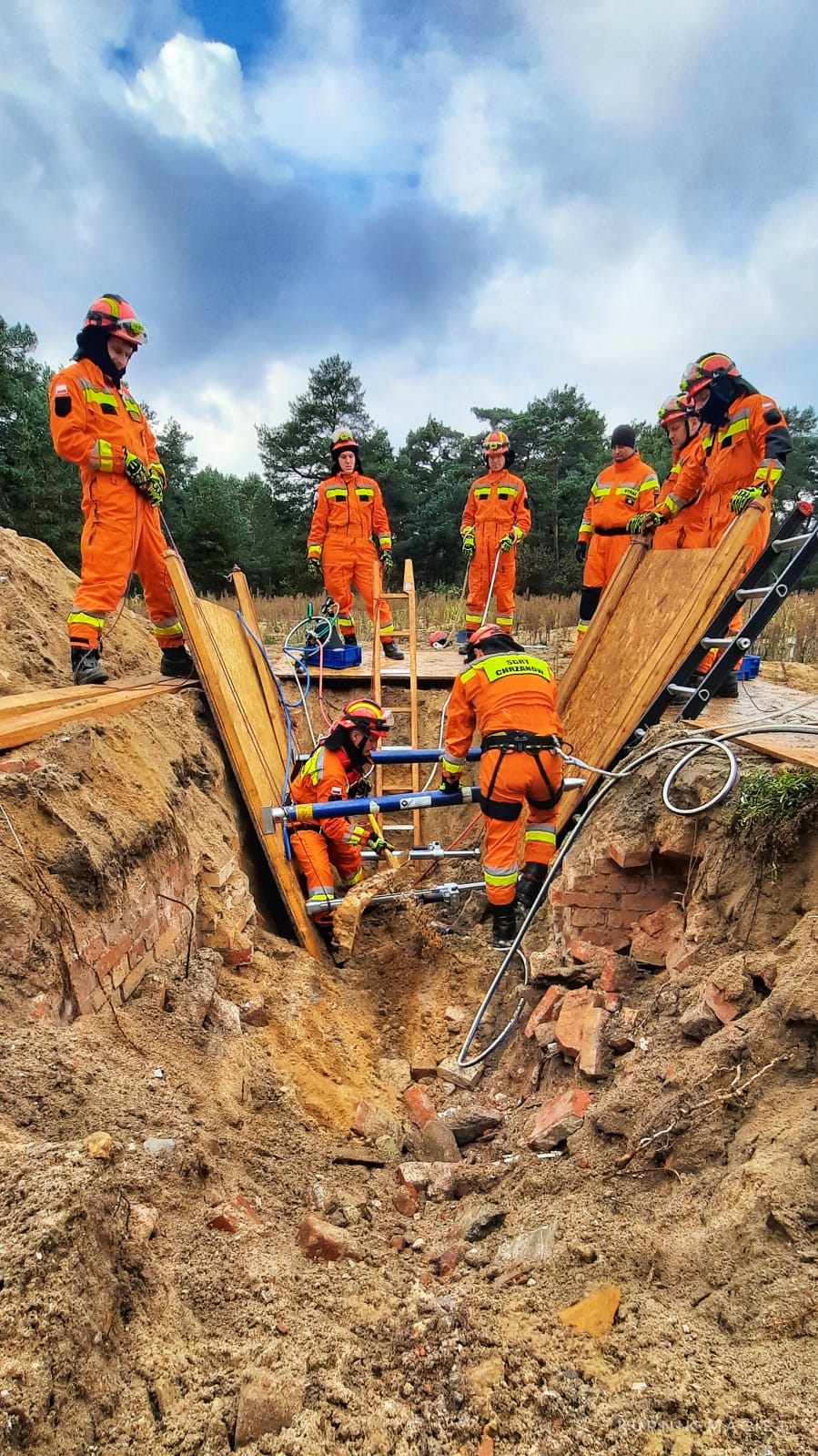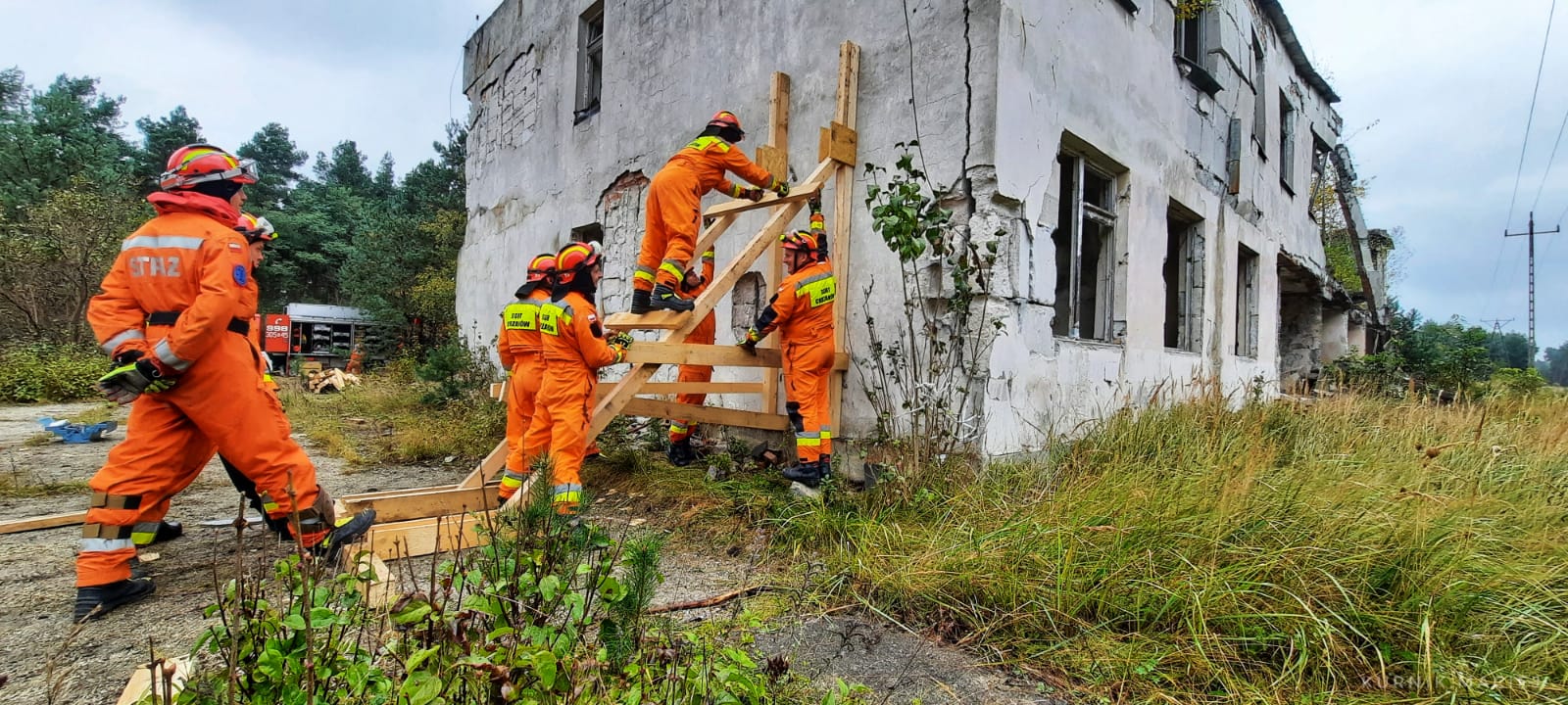 W dniach 11-14 października funkcjonariusze Specjalnej Grupy Ratownictwa Technicznego Chrzanów ćwiczyli na terenie Ośrodka Szkoleń Poligonowych Wojsk Lądowych – Żagań (obiekt Pstrąże) na obiektach budowlanych po byłej jednostce wojskowej, wojsk radzieckich, w warunkach realnie odzwierciedlających katastrofy budowlane – zawalonych budynkach koszarowych. Przećwiczono między innymi poszukiwanie osób zaginionych na gruzowiskach, współpraca z psami poszukiwawczymi, przebicia w stropach oraz w ścianach, stabilizację konstrukcji naruszonych stropów oraz ścian, stabilizację wykopów oraz podejmowanie poszkodowanych z ciasnych przestrzeni typu studnia. Ćwiczenia odbywały się zarówno