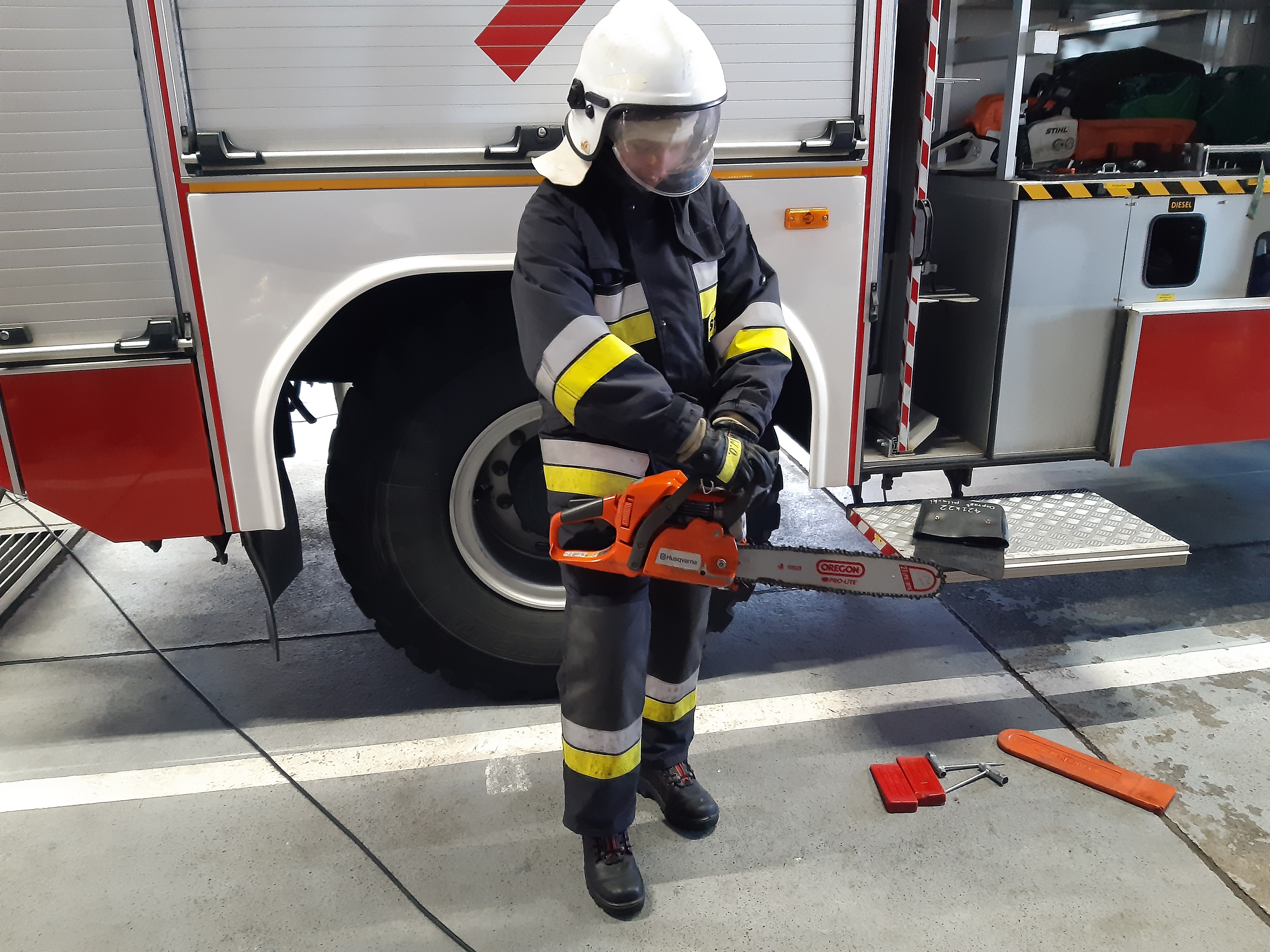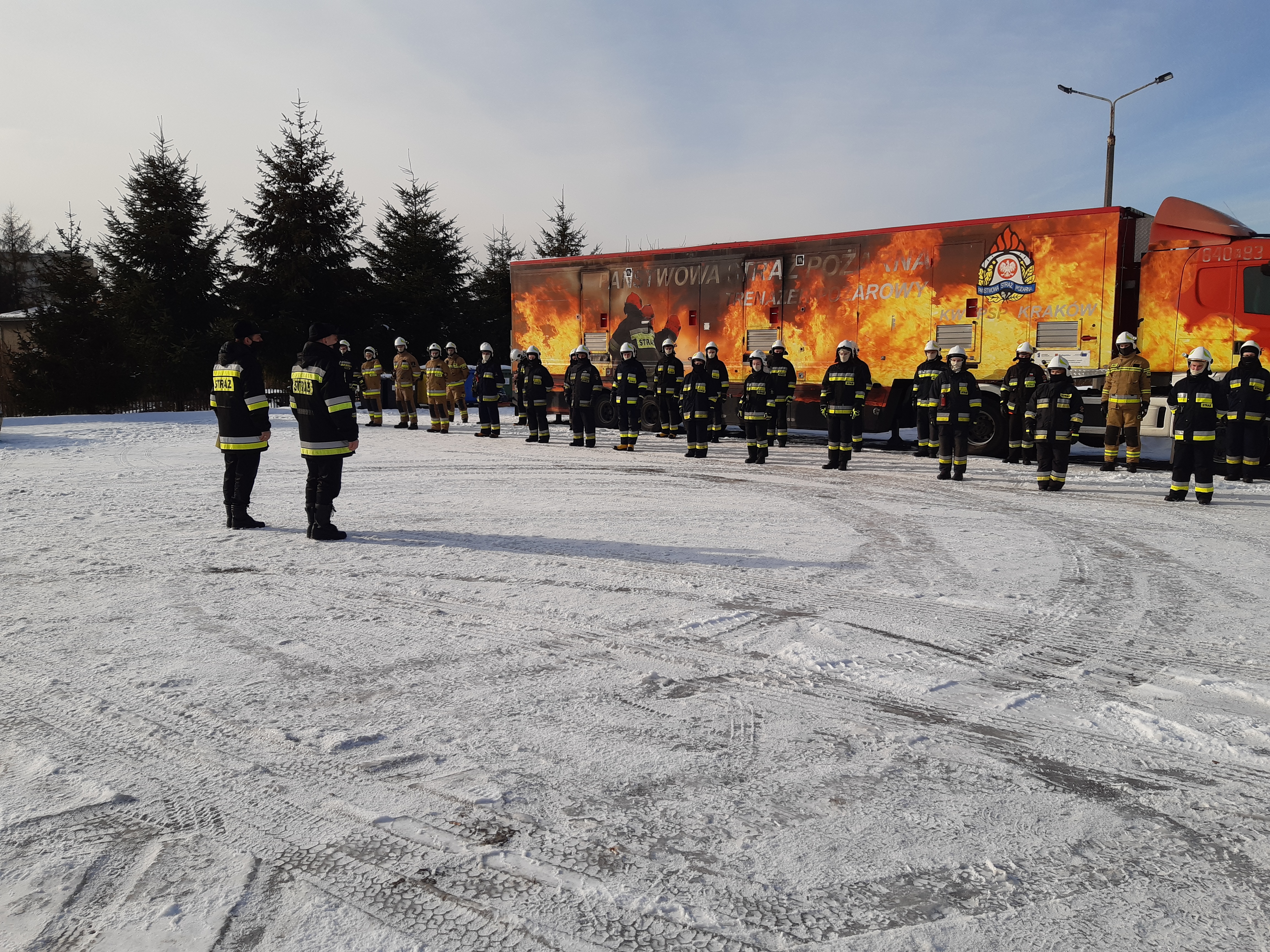 W przeddzień egzaminu na terenie Komendy Powiatowej Państwowej Straży w Chrzanowie zrealizowano ćwiczenia w komorze dymowej przy pomocy mobilnego trenażera rozgorzeniowo – dymowego ML-2000. Instruktorami byli oficerowie z Komendy Wojewódzkiej Państwowej Straży Pożarnej w Krakowie.