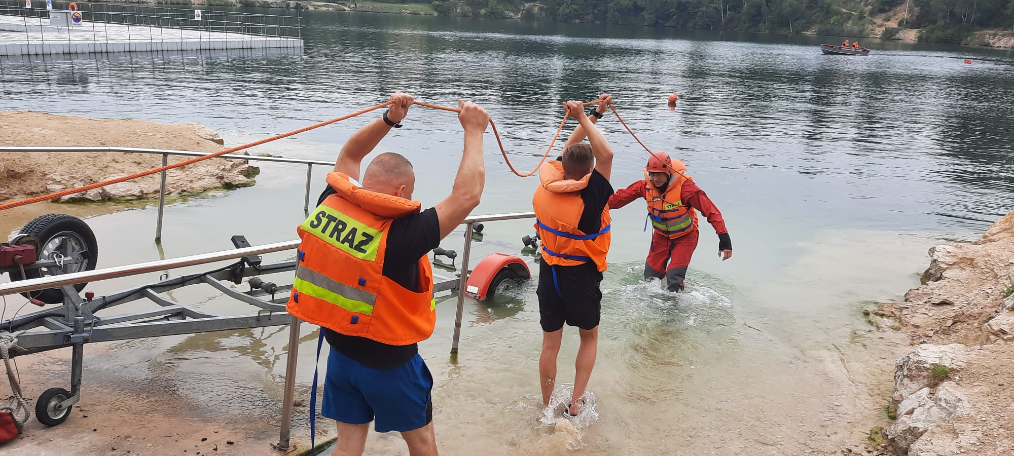 W dniach 26-28 lipca 2022 r. w ramach doskonalenia zawodowego wszystkie zmiany służbowe JRG Chrzanów odbyły szkolenie z ratownictwa wodnego na akwenach wodnych.