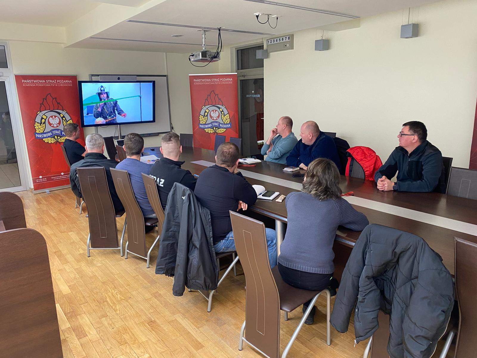 W dniach 11 i 18 lutego 2025r. na terenie Komendy Powiatowej Państwowej Straży Pożarnej w Chrzanowie przeprowadzono ćwiczenia dotyczące zagadnień związanych z zarządzaniem powietrzem podczas pracy w aparatach ochrony układu oddechowego. Szkolenie zrealizowano dla łącznie siedemnastu druhów Ochotniczej Straży Pożarnej w Grojcu. Na powyższych zajęciach druhowie nabyli kluczowe umiejętności niezbędne do prowadzenia nadzoru nad ratownikami pracującymi w sprzęcie OUO podczas prowadzenia działań rat.-gaśniczych. Nauczyli się, jak dokładnie szacować ilość powietrza, która pozwala na bezpieczne wycofanie się ze strefy zadymienia, poznali pojęcie "świętej rezerwy" – czyli ilości zapasu, którą strażak może naruszyć w sytuacji awaryjnej a także zgłębili metodologię obliczania punktu krytycznego, po przekroczeniu którego powrót staje się już niemożliwy. Dodatkowo druhowie z Grojca posiedli umiejętności prowadzenia ewidencji strażaków w strefie zagrożenia oraz planowania i przygotowywania podmian rot działających wewnątrz tej strefy. Po części teoretycznej planujemy przystąpić do zajęć praktycznych. Ich kontynuacja odbywać się będzie podczas miesięcznych ćwiczeń obiektowych w ramach prowadzonego przez KP PSP doskonalenia zawodowego. Naszym celem jest przygotowanie grupy strażaków, którzy powyższe zadania realizować będą w trakcie dużych działań ratowniczo – gaśniczych.