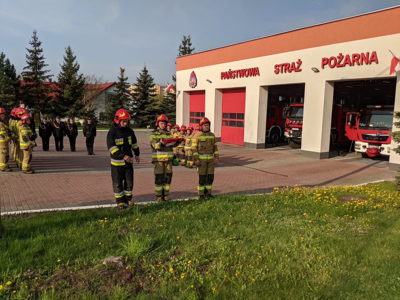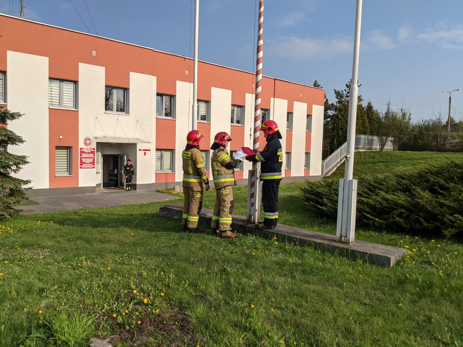 W dniu 2 maja 2022 roku w związku z obchodzonym w Polsce Dniem Flagi Rzeczypospolitej Polskiej w Komendzie Powiatowej Państwowej Straży Pożarnej w Chrzanowie odbyła się uroczysta zmiany służby, podczas której dokonano podniesienia Flagi na maszt.