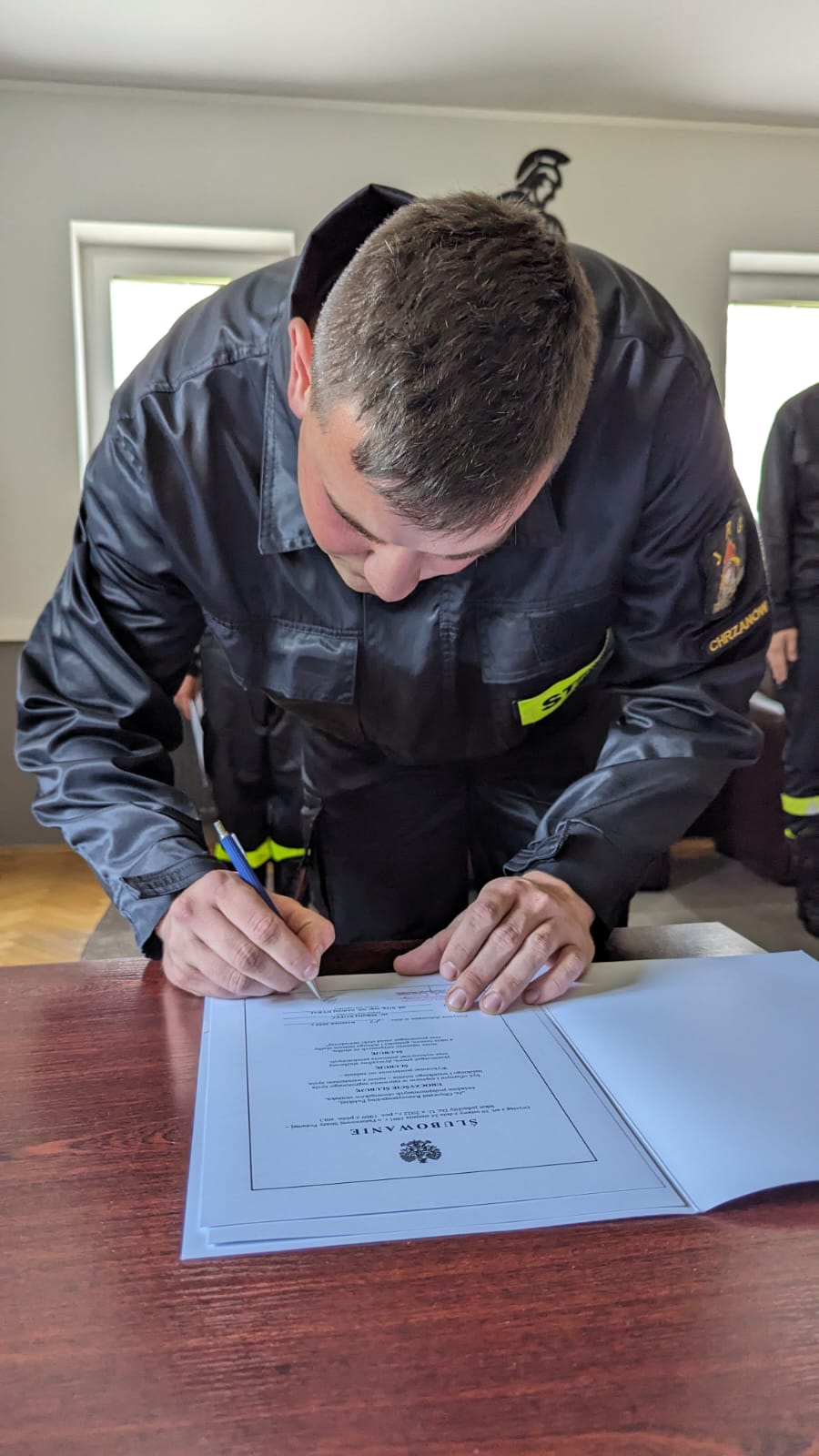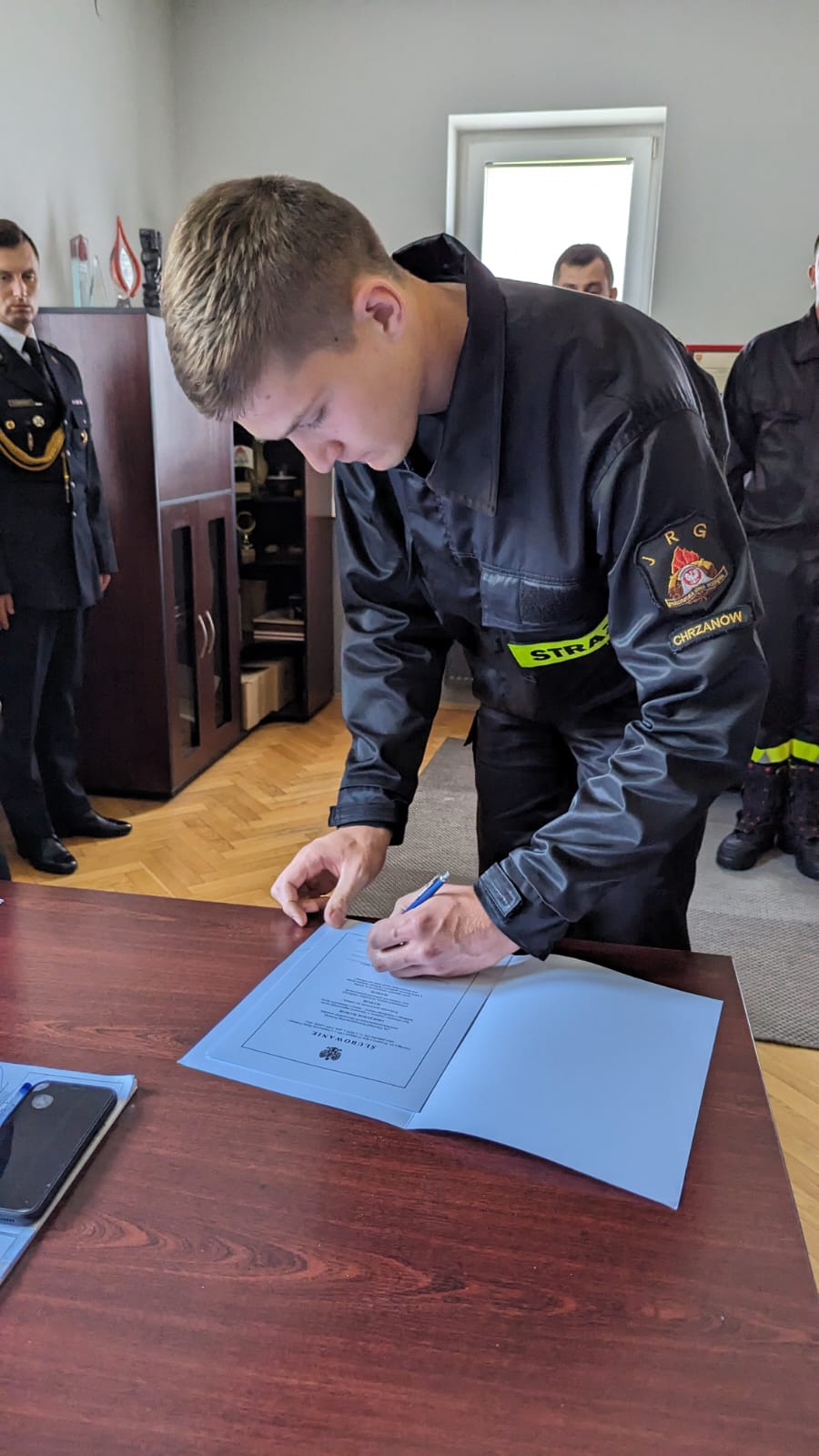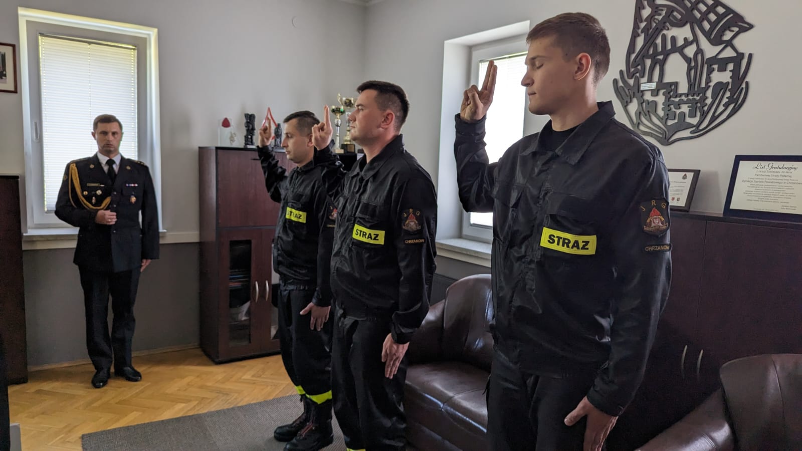 W dniu 12 września 2023 r. w Komendzie Powiatowej Państwowej Straży Pożarnej w Chrzanowie odbyło się uroczyste ślubowanie trzech funkcjonariuszy przyjętych do służby w Państwowej Straży Pożarnej. Ślubowanie złożyli :