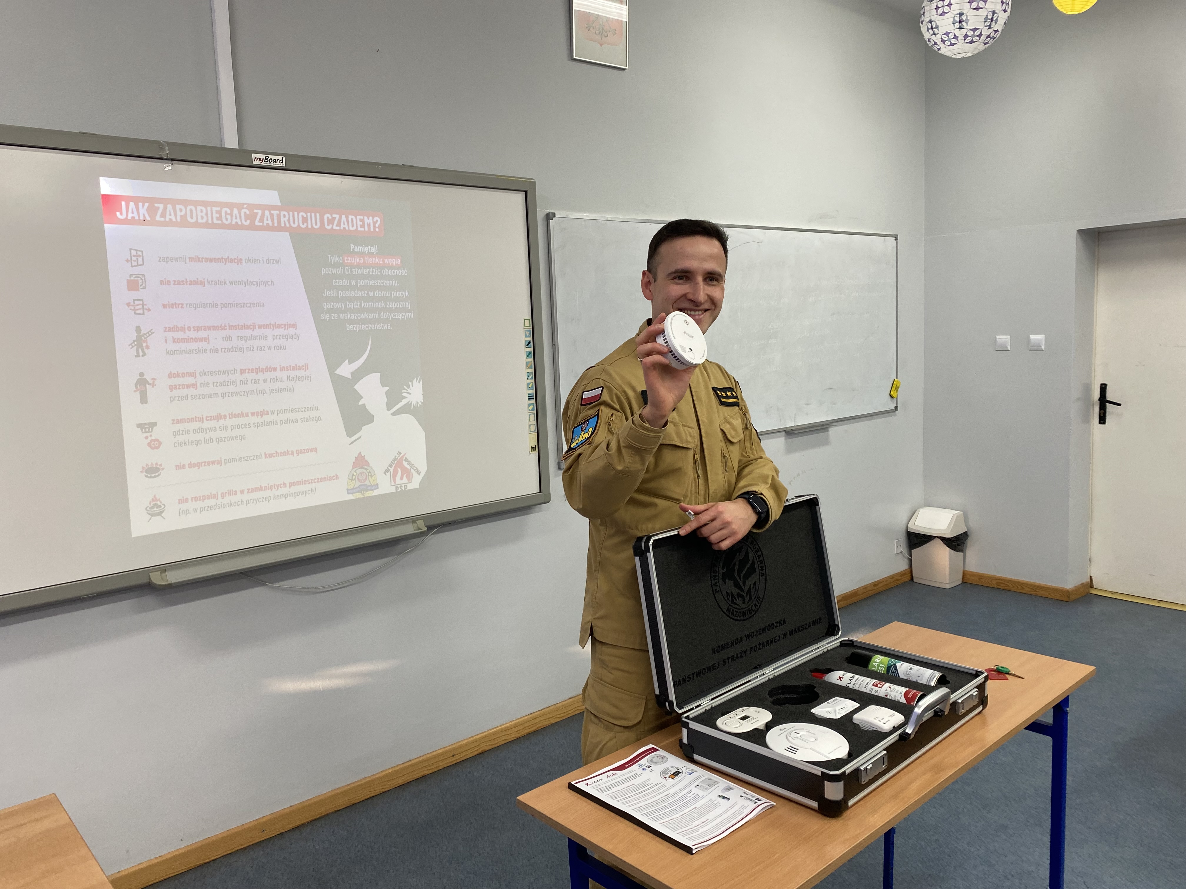 16 stycznia 2026 r. w związku z rozpoczynającymi się feriami na terenie województwa mazowieckiego funkcjonariusz Komendy Powiatowej PSP w Ciechanowie – st. kpt. Radosław Kilanowski przeprowadził zajęcia edukacyjne dla młodzieży ze Szkoły Podstawowej nr 7 w Ciechanowie.