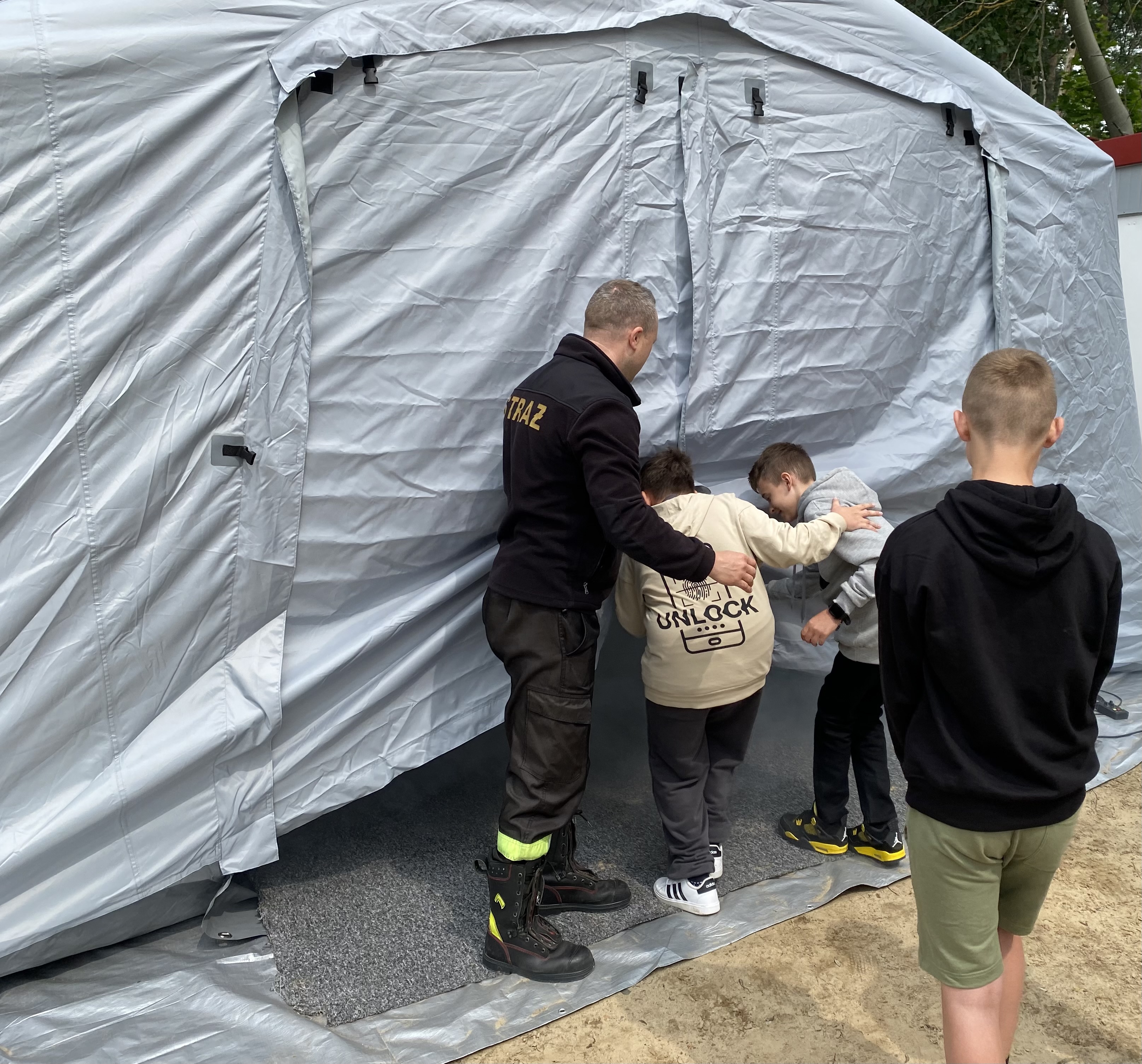 Komenda Powiatowa PSP w Ciechanowie wystawiła także stoisko promocyjne oraz zadymiony namiot, w którym przy użyciu kamery termowizyjnej, należało odnaleźć ukryty przedmiot.