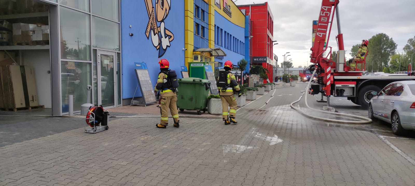 W ramach doskonalenia zawodowego, funkcjonariusze z Jednostki Ratowniczo-Gaśniczej Państwowej Straży Pożarnej w Ciechanowie w dniu dzisiejszym ćwiczyli na wypadek powstania pożaru w Galerii Handlowej Mrówka przy ul. Niechodzkiej w Ciechanowie. Celem ćwiczeń było: sprawdzenie umiejętności prowadzenia ewakuacji pracowników, powiadamiania służb współdziałających oraz obiegu informacji i koordynacji pomiędzy Kierującym Działaniem Ratowniczym, a Stanowiskiem Kierowania Komendanta Powiatowego PSP w Ciechanowie. Strażacy sprawdzili również zaopatrzenie wodne do celów przeciwpożarowych na terenie obiektu oraz działanie systemów wykrywania pożaru. Łącznie w ćwiczeniach uczestniczyło 13 strażaków z jednostki ratowniczo-gaśniczej w Ciechanowie. Ewakuacja obiektu przebiegała sprawnie, a podczas jej przeprowadzania nikt nie ucierpiał. Na czas trwania ćwiczeń galeria była zamknięta dla klientów.