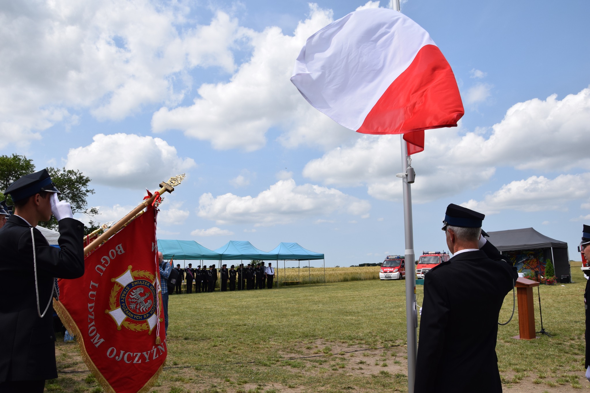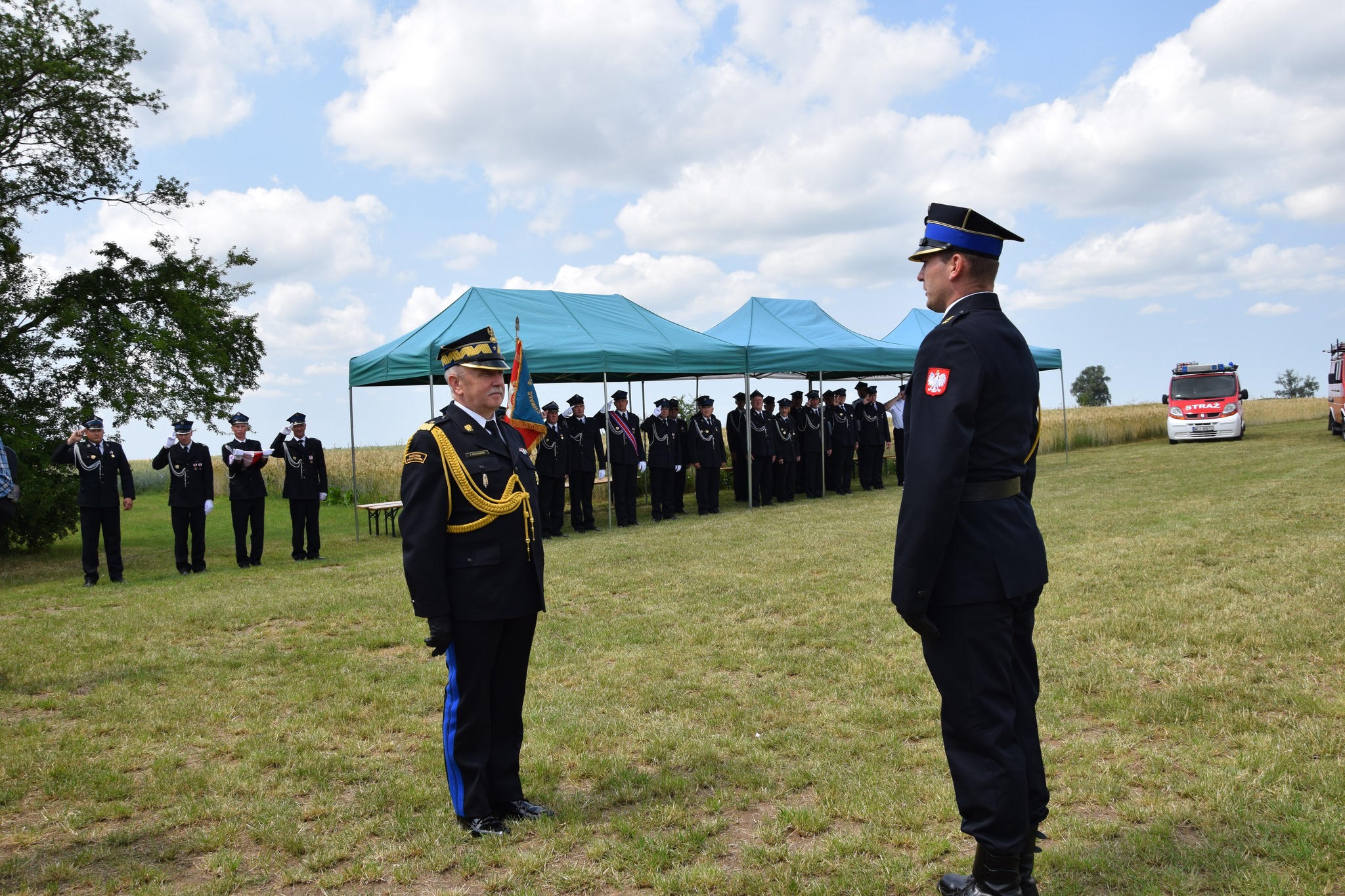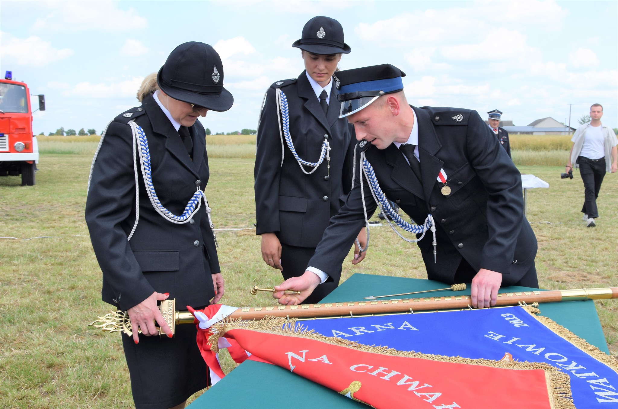 - przedstawiciele władz samorządowych, druhowie z zaprzyjaźnionych jednostek OSP oraz lokalna społeczność.