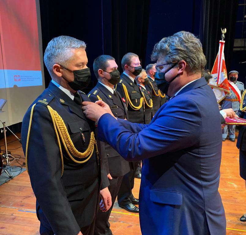 W trakcie części oficjalnej zostały wręczone odznaczenia oraz wyróżnienia funkcjonariuszom i pracownikom cywilnym Państwowej Straży Pożarnej: