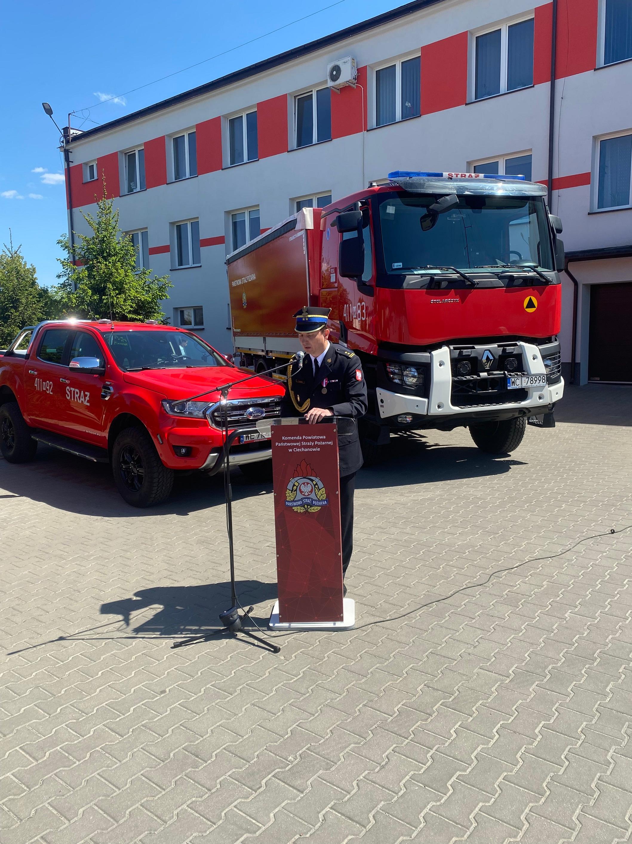 Uroczystość była okazją do uroczystego przekazania i poświęcenia nowego ciężkiego samochodu ratowniczo-gaśniczego na rzecz Komendy Powiatowej Państwowej Straży Pożarnej w Ciechanowie. Poświęcenia pojazdu dokonał Ksiądz Kapelan Krzysztof Jaroszewski.