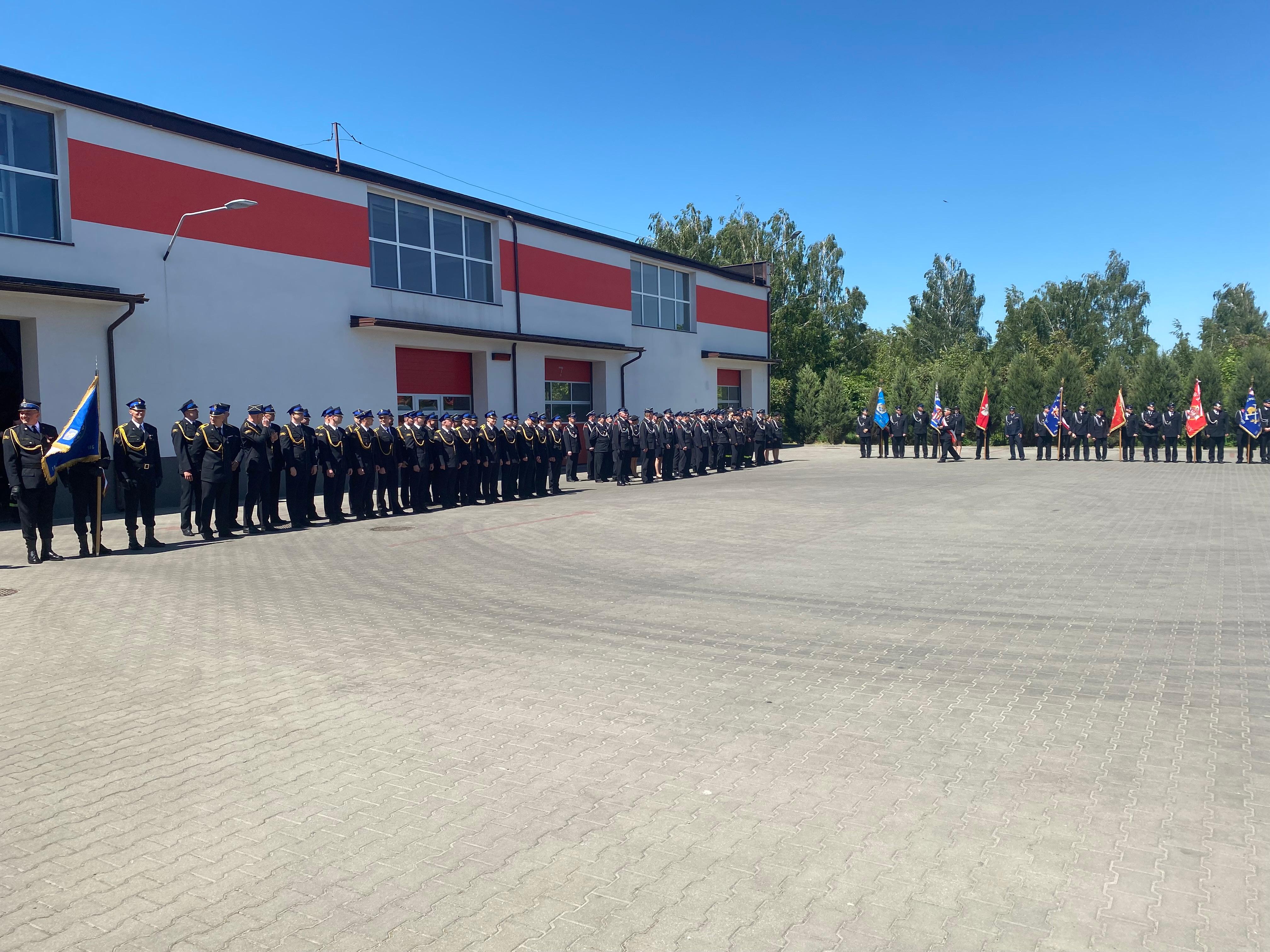 Uroczystość rozpoczęła się złożeniem meldunku przez dowódcę uroczystości mł. kpt. Norberta Michtę nadbryg. Arturowi Gonerze – Mazowieckiemu Komendantowi Wojewódzkiemu Państwowej Straży Pożarnej, który dokonał przeglądu pododdziałów i przywitał się z pocztami sztandarowymi. Następnie podniesiono flagę państwową i odegrano hymn państwowy.