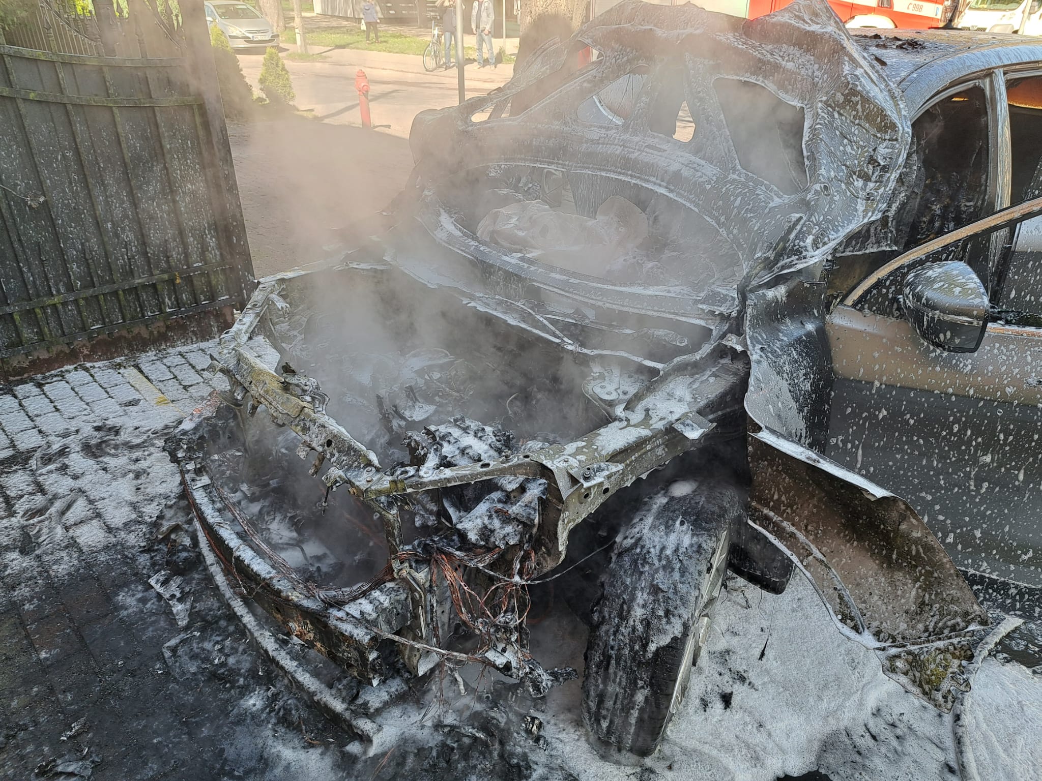 10 maja o godz. 08:59 otrzymaliśmy informacje o pożarze w Ciechanowie przy ul. Kicińskiego. Na miejscu zdarzenia strażacy zastali samochód osobowy marki Nissan Qashqai całkowicie objęty pożarem. Działania strażaków polegały na zabezpieczeniu miejsca prowadzonych działań oraz ugaszeniu pożaru podając jeden prąd piany na palący się samochód. Po ugaszeniu pojazd sprawdzono kamerą termowizyjną nie stwierdzając zagrożenia pożarowego. Ratownicy pracowali w sprzęcie ochrony układu oddechowego. W działaniach trwających 49min udział brał jeden zastęp straży pożarnej.