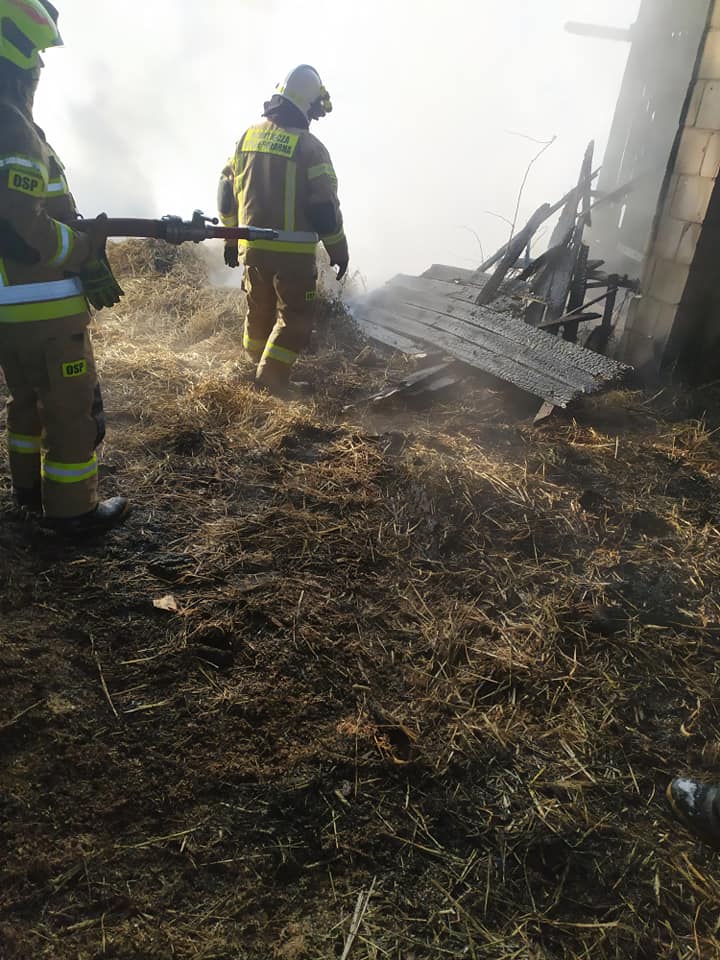 17 stycznia o godz. 10:45 otrzymaliśmy informację o pożarze w m. Sarnowa Góra. Po przybyciu na miejsce zdarzenia Kierujący Działaniami Ratowniczymi stwierdził, że doszło do pożaru stodoły, w której znajdowały się dwa samochody osobowe bele słomy. Przed przybyciem straży pożarnej z budynku została ewakuowana jedna osoba poszkodowana – u której stwierdzono nagłe zatrzymanie krążenia. Działania ratowników polegały na zabezpieczeniu miejsca zdarzenia. Następnie przystąpiono do udzielania kpp poszkodowanemu – ratownicy rozpoczęli resuscytację krążeniowo-oddechową. W tym samym czasie strażacy wyposażeni w sprzęt ochrony układu oddechowego rozpoczęli gaszenie stodoły. W między czasie strażacy drugiej roty ubrani w aparaty ODO przy pomocy linii gaśniczej rozpoczęli gaszenie stodoły. Na miejsce przybył patrol policji oraz ZRM, któremu przekazano poszkodowanego. Niestety po kilkudziesięciu minutach resuscytacji lekarz stwierdził zgon. Po podaniu dwóch prądów wody na palący się obiekt i wyprowadzeniu pojazdów na zewnątrz pożar został zlokalizowany. Strażacy dogaszali pogorzelisko w stodole oraz jeden z pojazdów (Nissan Almera), który uległ całkowitemu spaleniu. Następnie pogorzelisko oraz wrak samochodu dokładnie przewietrzono i sprawdzono kamerą termowizyjną. W działaniach trwających 1h41min udział brało 7 zastępów straży pożarnej.