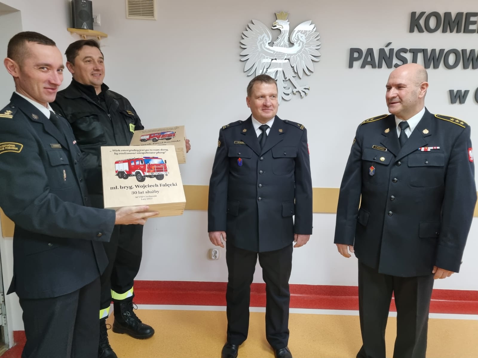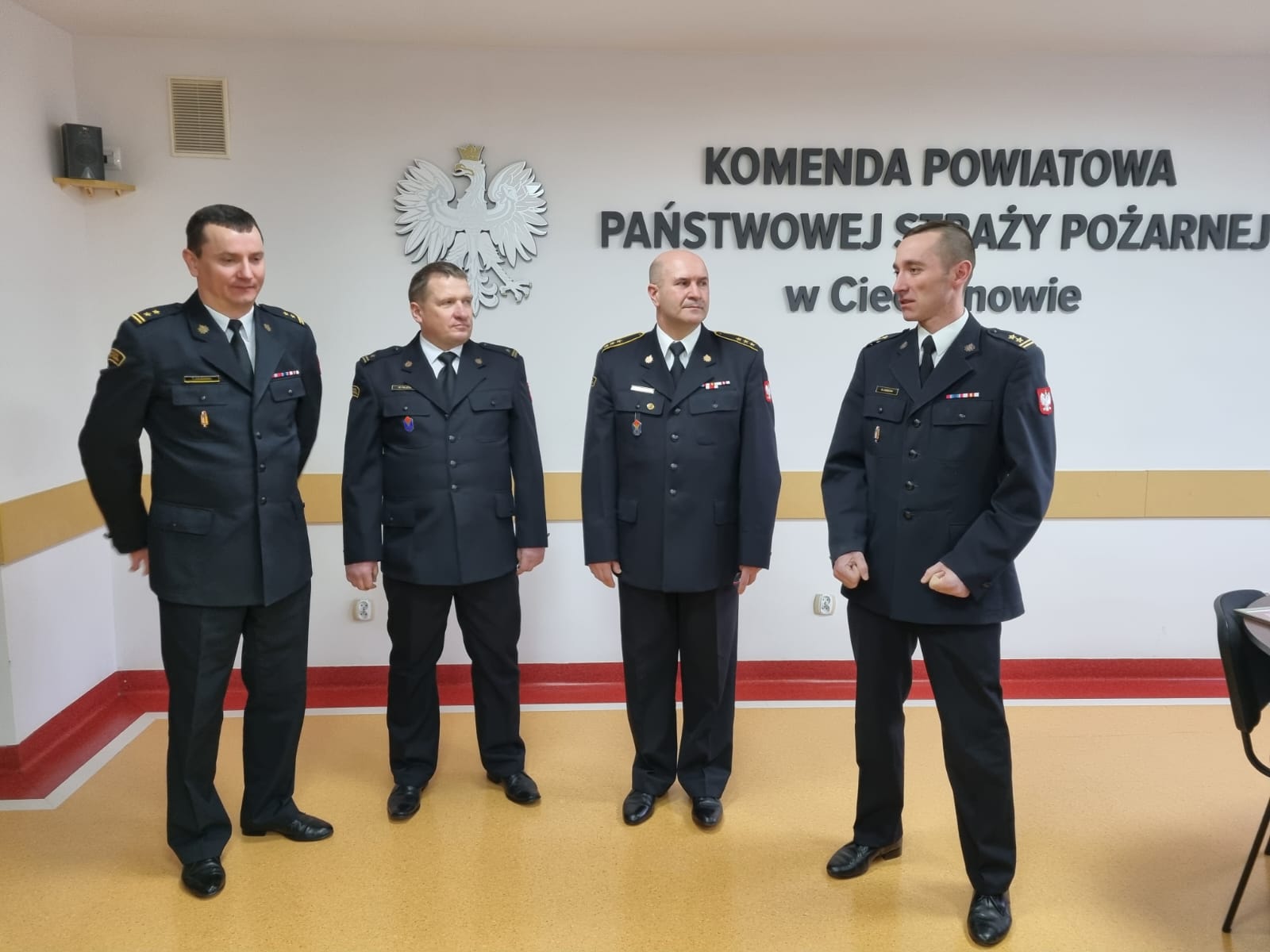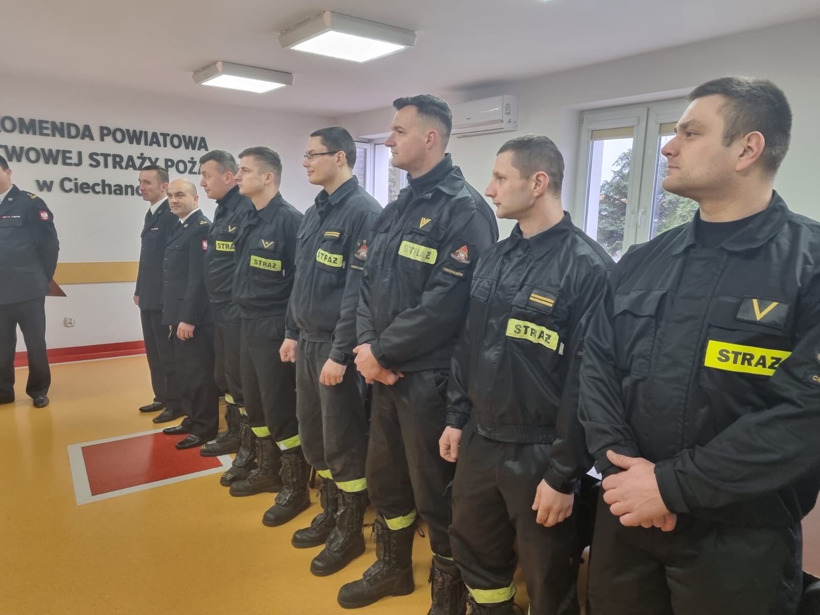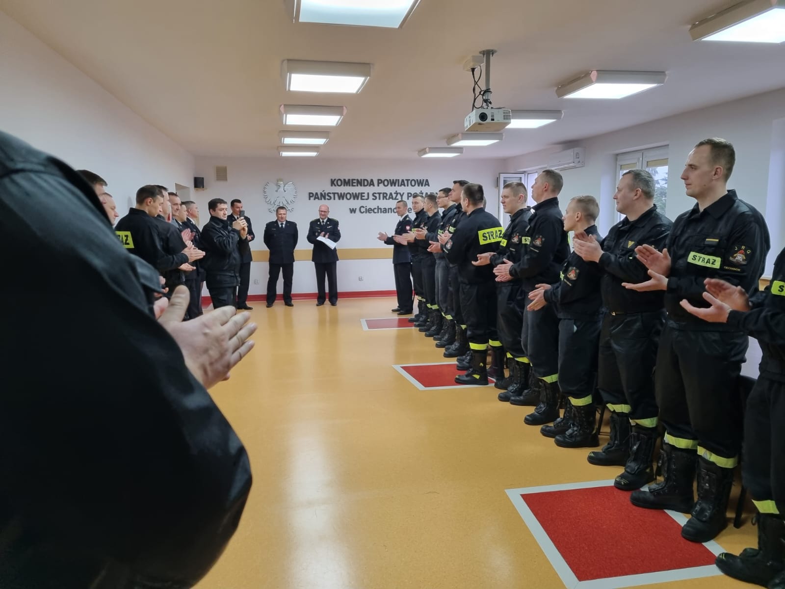 W trakcie uroczystości Komendant Powiatowy Państwowej Straży Pożarnej w Ciechanowie bryg. Tomasz Gajewski podziękował za zaangażowanie oraz służbę i poświęcenie w realizacji obowiązków służbowych.