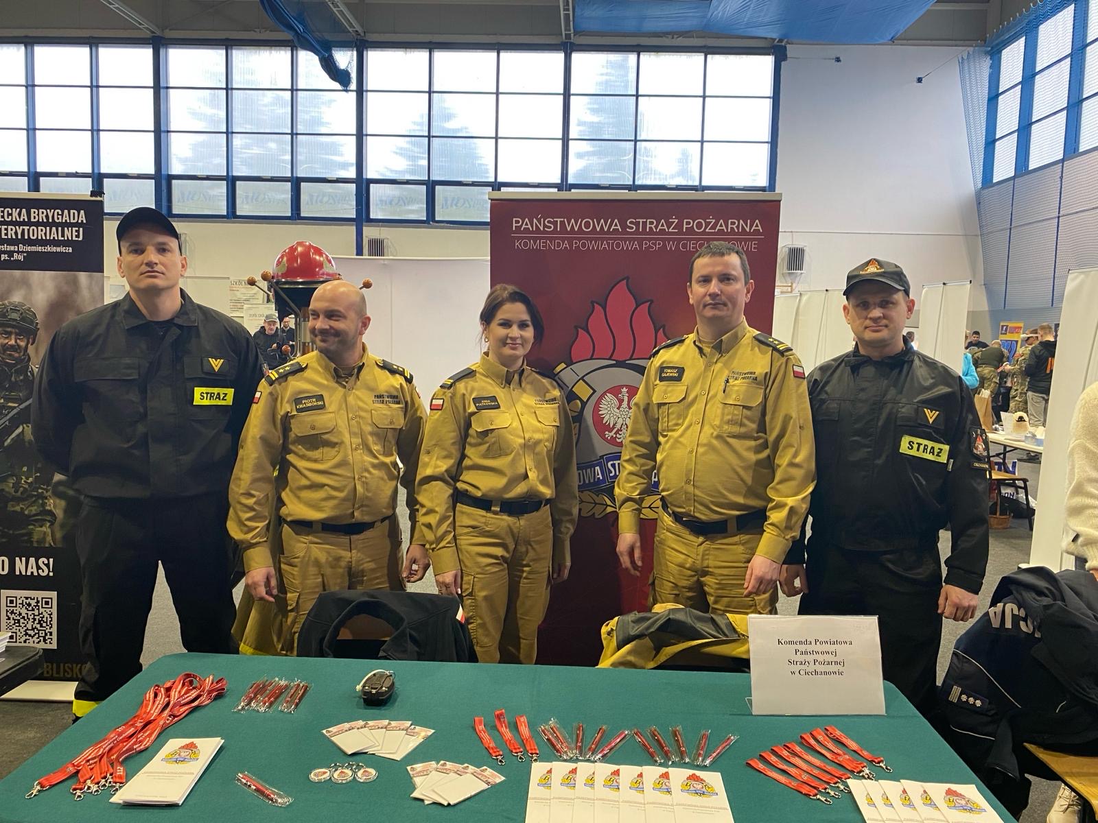 Komenda Powiatowa Państwowej Straży Pożarnej w Ciechanowie wystawiła także swoje stanowisko promujące zawód strażaka. Zainteresowani mieli możliwość zapoznania się z zawodem strażaka oraz z wymaganiami stawianymi przy naborze do służby.