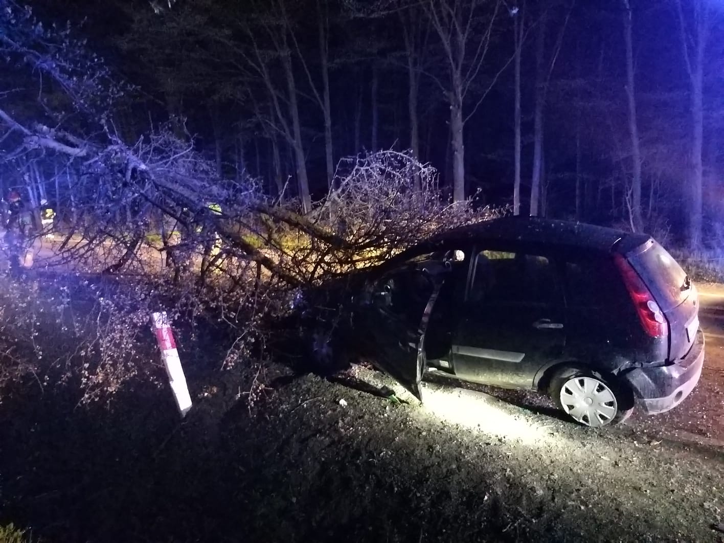 26 kwietnia o godz. 00:29 otrzymaliśmy informację o zdarzeniu drogowym w m. Przywilcz na drodze wojewódzkiej nr 616. Po przybyciu na miejsce zdarzenia strażacy zastali wypadek samochodu osobowego Ford Fiesta, który uderzył w drzewo. Samochodem podróżowały trzy osoby – wszystkie osoby wymagały udzielenia pierwszej pomocy . Na miejscu był obecny patrol Policji. Działania straży pożarnej polegały na zabezpieczeniu miejsca działań, udzieleniu kwalifikowanej pierwszej pomocy osobom poszkodowanym, odłączeniu zasilania w pojeździe. Po przyjeździe ZRM na miejsce zdarzenia poszkodowani zostali przekazani. Po zakończeniu czynności przez Policję strażacy usunęli połamane drzewo z jezdni oraz uprzątnęli pozostałości powypadkowe. W działaniach trwających 3h9min udział brało siedem zastępów straży pożarnej.