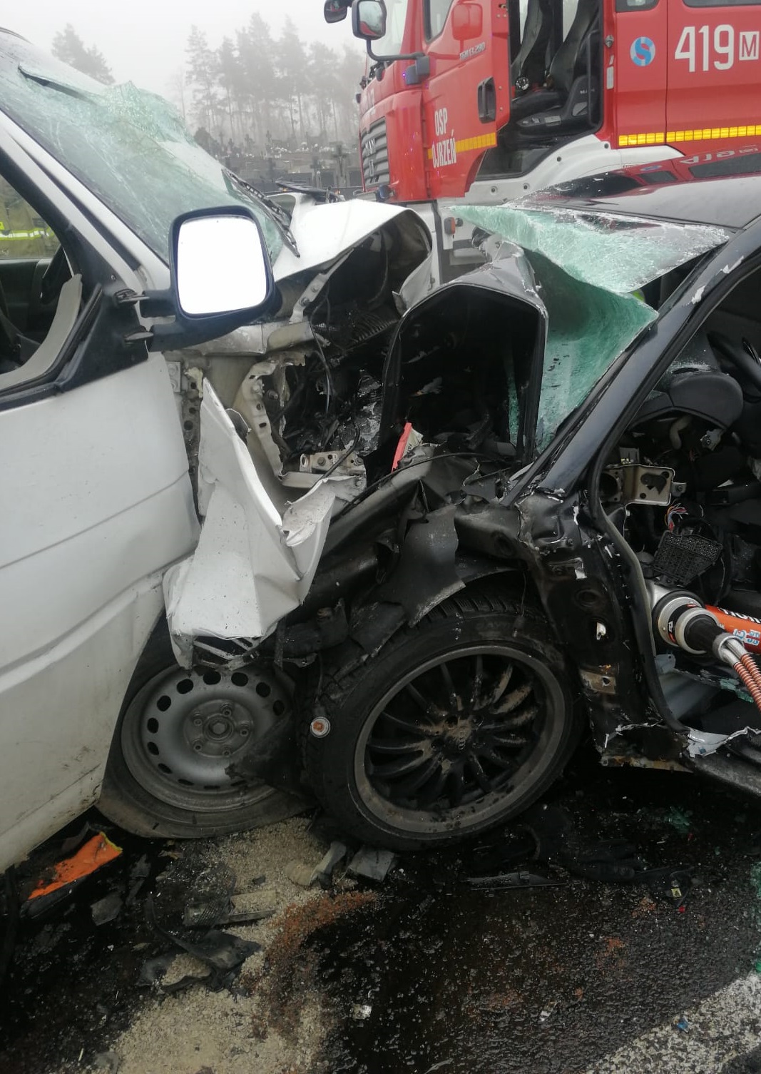 15 marca o godz. 06:43 otrzymaliśmy zgłoszenie o zdarzeniu drogowym w m. Kraszewo na drodze krajowej nr 50. Po przybyciu na miejsce zdarzenia strażacy zastali wypadek dwóch samochodów: Audi A3 oraz Volkswagen Transporter. Samochodami podróżowało łącznie siedem osób z czego sześć odniosło obrażenia na skutek zdarzenia. Dwie osoby były zakleszczone w pojazdach i konieczne było użycie sprzętu hydraulicznego w celu ich ewakuacji. Strażacy udzielili kpp osobom poszkodowanym oraz odłączyli zasilanie w pojazdach. W trakcie działań na miejsce dotarła policja oraz Pogotowie Ratunkowe, któremu przekazano osoby poszkodowane. Podczas prowadzonych działań ruch na drodze został całkowicie zablokowany. Przybyły na miejsce patrol policji zorganizował objazd zamkniętego odcinka drogi. Wyciek płynów eksploatacyjnych został zlikwidowany przy pomocy sorbentu. W działaniach trwających 2h37min udział brało pięć zastępów straży pożarnej.