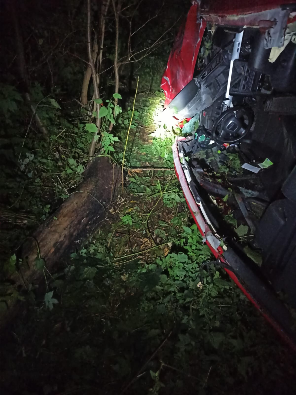 2 września o godz. 01:23 otrzymaliśmy zgłoszenie o zdarzeniu drogowym w m. Bieńki-Śmietanki. Na miejscu strażacy zastali wypadek samochodu osobowego Audi A4, który uderzył w łosia na drodze powiatowej i zjechał do lasu. Martwe zwierzę leżało na poboczu drogi. Samochodem podróżowały dwie osoby – w momencie przybycia straży pożarnej obie osoby znajdowały się w pojeździe – u kierowcy stwierdzono brak funkcji życiowych. Działania straży pożarnej polegały na zabezpieczeniu miejsca zdarzenia, poszkodowanych ewakuowano z pojazdu i przystąpiono do udzielenia kpp. W trakcie działań na miejsce przybył Zespół Ratownictwa Medycznego, któremu przekazano poszkodowanych. Dalsze działania JOP polegały na pomocy ZRM podczas reanimacji kierowcy, odłączeniu akumulatora w samochodzie. Pomimo podjętej reanimacji lekarz stwierdził zgon mężczyzny, kobieta zaś została zabrana do szpitala. Po wykonaniu czynności dochodzeniowych przez Policję samochód został zabrany przez Pomoc Drogową a jezdnia została uprzątnięta z pozostałości powypadkowych. W działaniach trwających 5h17min udział brały dwa zastępy straży pożarnej.