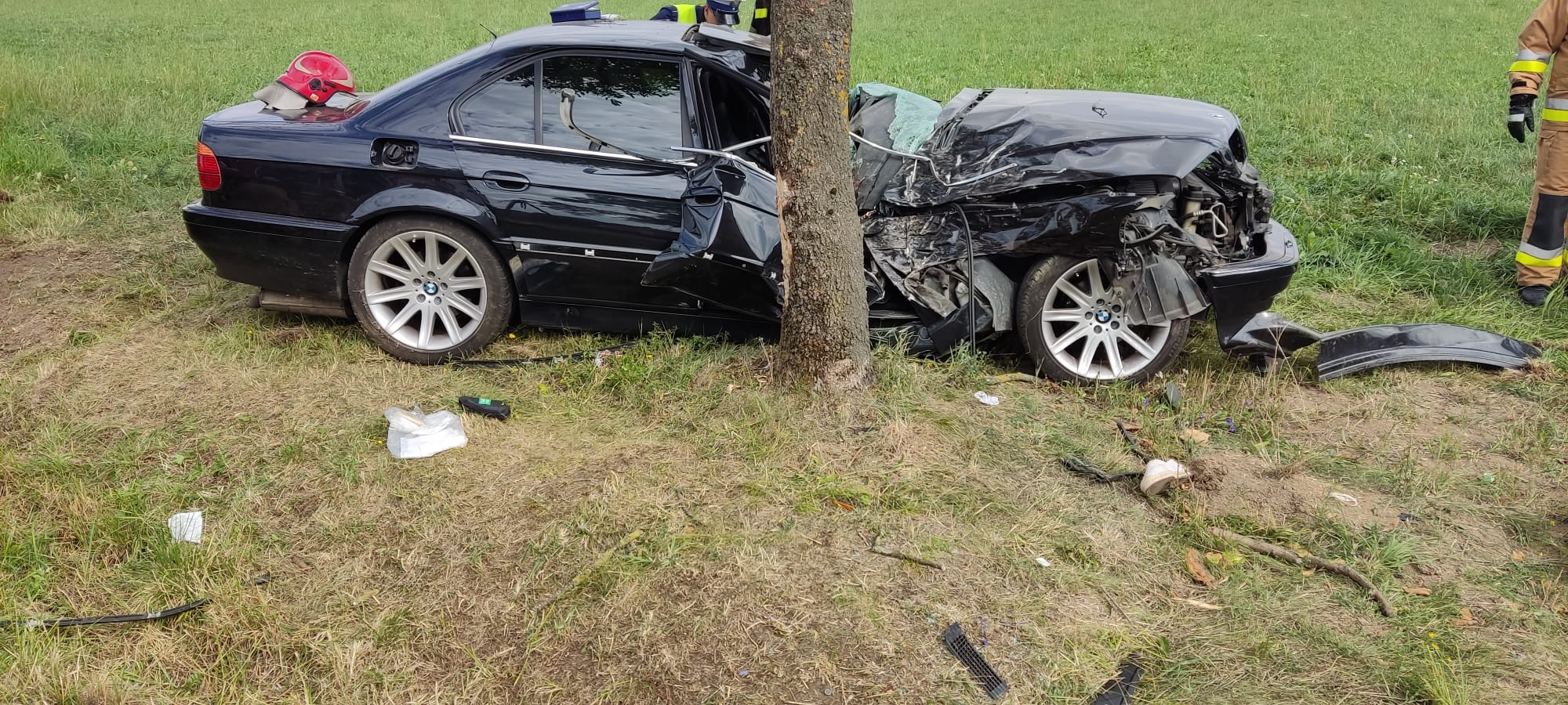 13 sierpnia o godz. 14:02 otrzymaliśmy informację o zdarzeniu drogowym w m. Zygmuntowo. Na miejscu zdarzenia strażacy zastali samochód osobowy BMW, który wypadł z jezdni i uderzył w drzewo. Pojazdem podróżowały dwie osoby, obie były poszkodowane i znajdowały się poza pojazdem w chwili przyjazdu jednostek ochrony przeciwpożarowej. Na miejscu obecny ZRM oraz Policja. Działania straży polegały na zabezpieczeniu miejsca zdarzenia, ruch na drodze został zablokowany. W uszkodzonym samochodzie odłączono akumulator - jednocześnie udzielono kpp jednej osobie poszkodowanej - pasażerowi. Kierowca pojazdu był pod opieką ZRM – niestety pomimo podjętej resuscytacji krążeniowo-oddechowej nie udało się przywrócić funkcji życiowych. Na miejsce przybył LPR, któremu przekazano osobę poszkodowaną. Ze względu na brak zagrożeń działania zakończono. Na miejscu pozostała policja prowadząc czynności dochodzeniowe. W działaniach trwających 1h29min udział brało 14 strażaków.