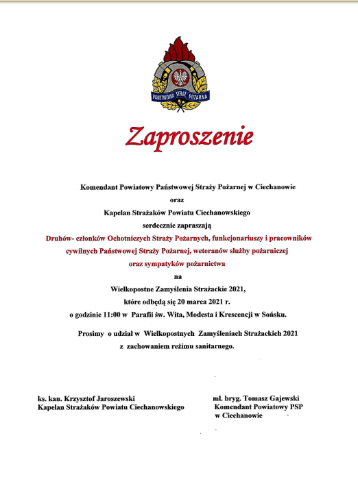 Zaproszenie na Wielkopostne Zamyślenia Strażackie 2021