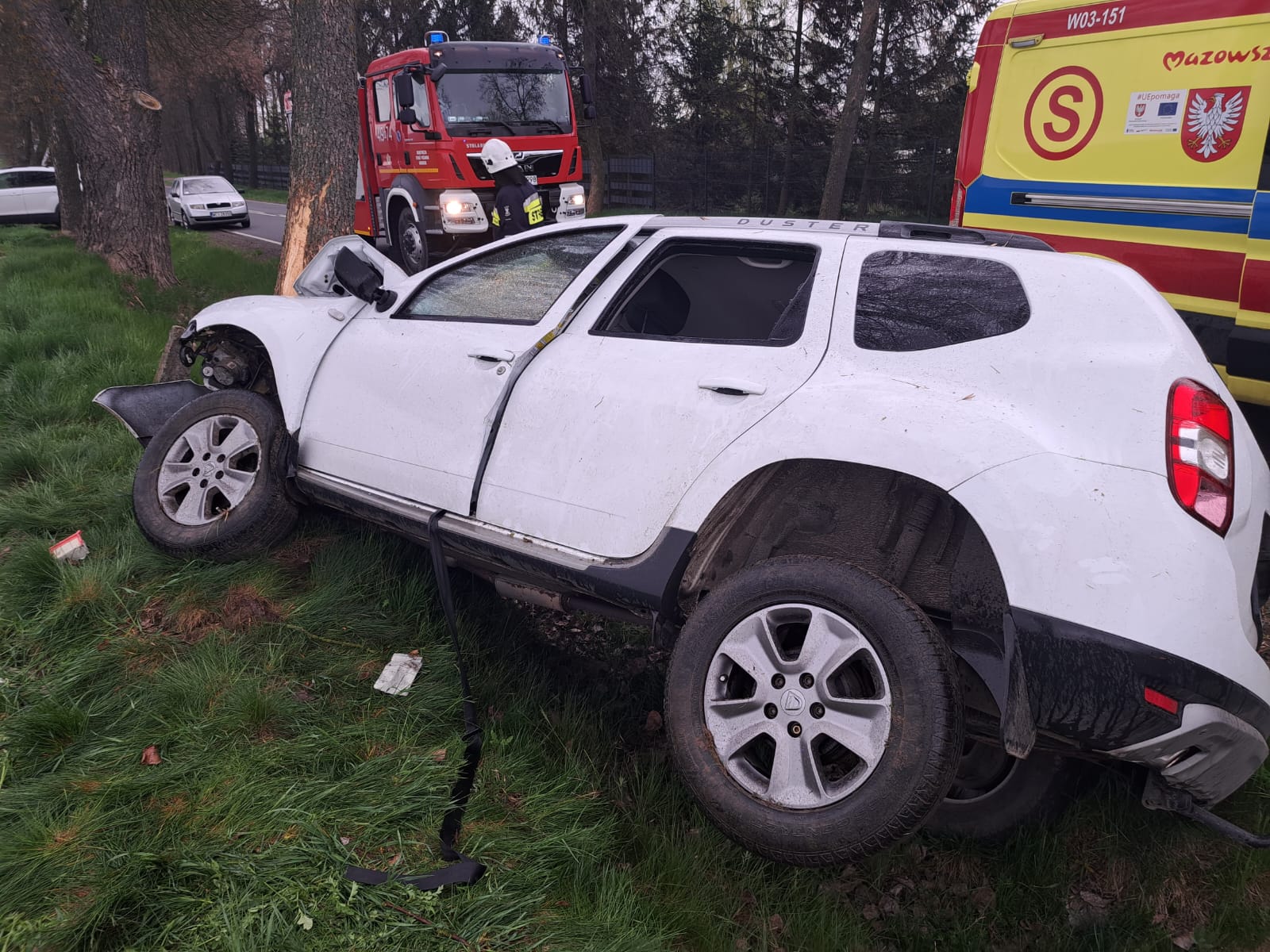 25 kwietnia o godz. 07:25 otrzymaliśmy informację o zdarzeniu drogowym – Grudusk, ul. Ciechanowska. Na miejscu zdarzenia strażacy zastali samochód osobowy Dacia Duster, który wypadł z drogi i uderzył w drzewo. Na skutek zdarzenia jedna osoba została poszkodowana (jedyny podróżujący pojazdem). Działania straży pożarnej polegały na zabezpieczeniu miejsca oraz udzieleniu pierwszej pomocy osobie poszkodowanej do czasu przybycia ZRM. Strażacy uprzątnęli miejsce zdarzenia, a pojazd został usunięty z drogi. W działaniach trwających 1h36min udział brały cztery zastępy straży pożarnej.