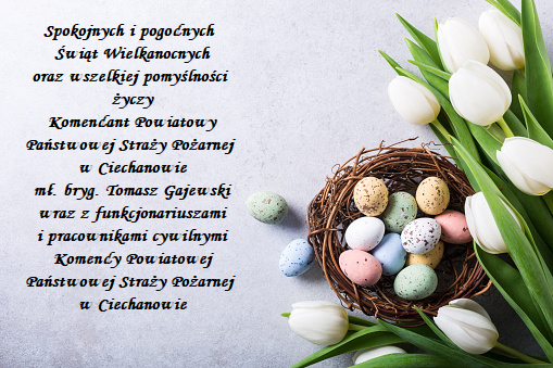 Życzenia Wielkanocne 31.03.2021 Życzenia Wielkanocne Komendy Powiatowej Państwowej Straży Pożarnej w Ciechanowie Zdjęcia (1) Pokaż zdjęcie 1 z galerii.