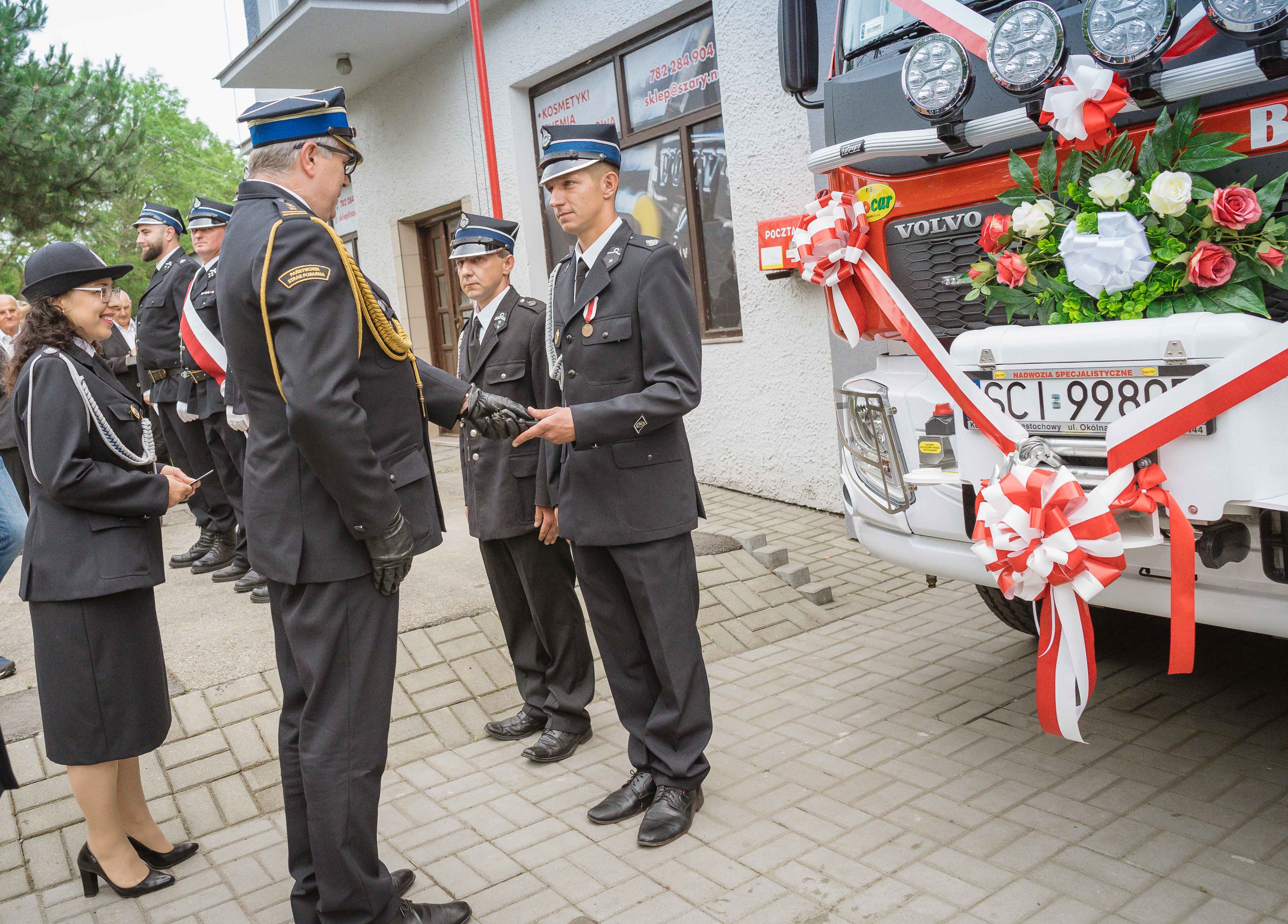Na koniec głos zabrali zaproszeni goście w tym st. bryg. Rafał Świerczek, Zastępca Śląskiego Komendanta Wojewódzkiego Państwowej Straży Pożarnej, a zarazem koordynator ds. współpracy Państwowej Straży Pożarnej i Ochotniczych Straży Pożarnych, który w swoim wystąpieniu podziękował za dotychczasową działalność OSP Zabłocie na rzecz lokalnej społeczności, przypomniał o uchwalonej w grudniu 2021 roku Ustawie o Ochotniczych Strażach Pożarnych, życzył bezusterkowego i bezpiecznego użytkowania nowego samochodu. Na zakończenie pogratulował dotychczasowych osiągnięć bardzo licznej Młodzieżowej Drużynie Pożarniczej oraz życzył kolejnych sukcesów.