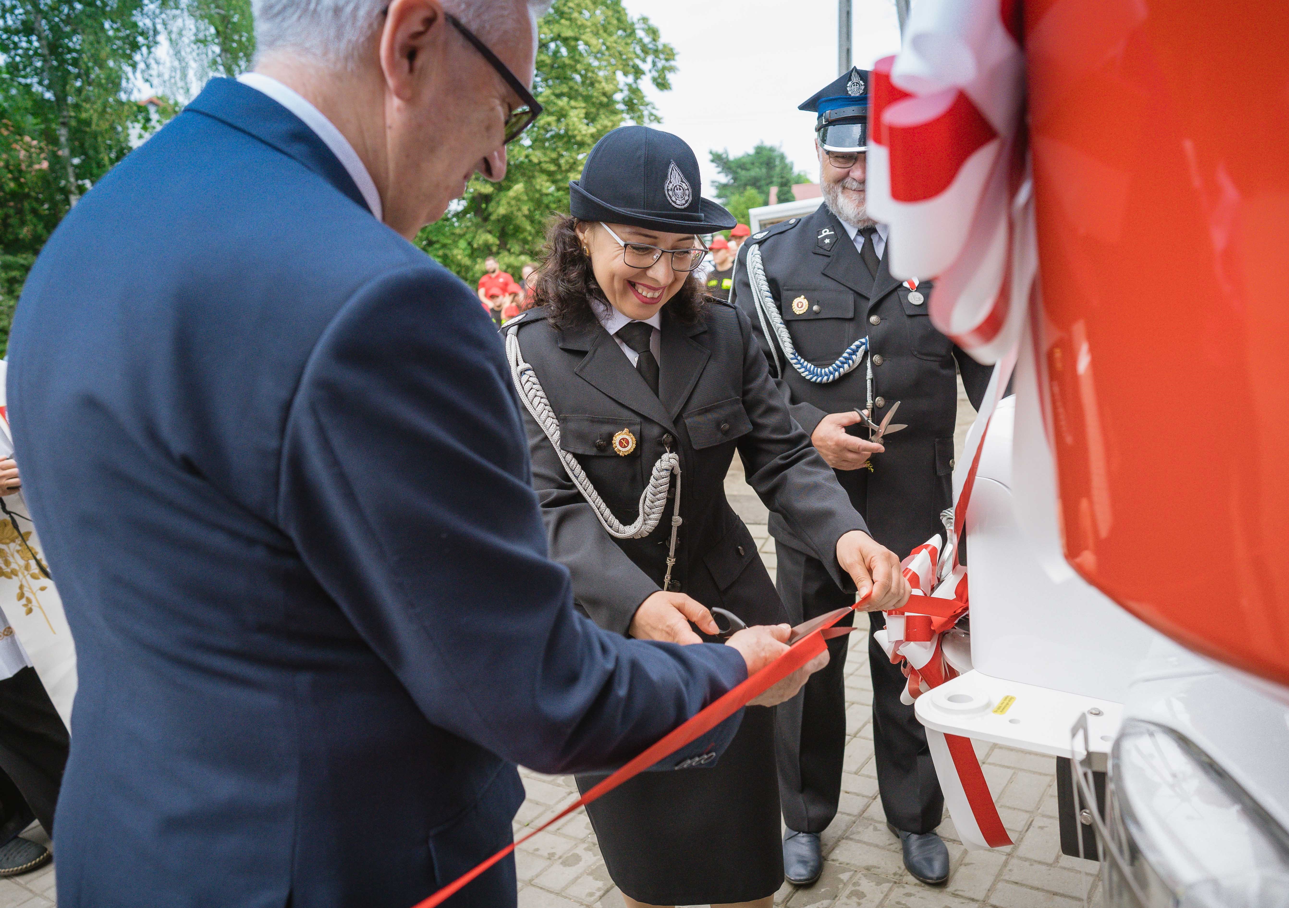 Akt przekazania samochodu w imieniu władz samorządowych odczytał Przewodniczący Rady Miejskiej Czesław Greń, po czym nastąpiło symboliczne przecięcie wstęgi, uroczyste wręczenie kluczy oraz poświęcenie samochodu przez proboszcza.