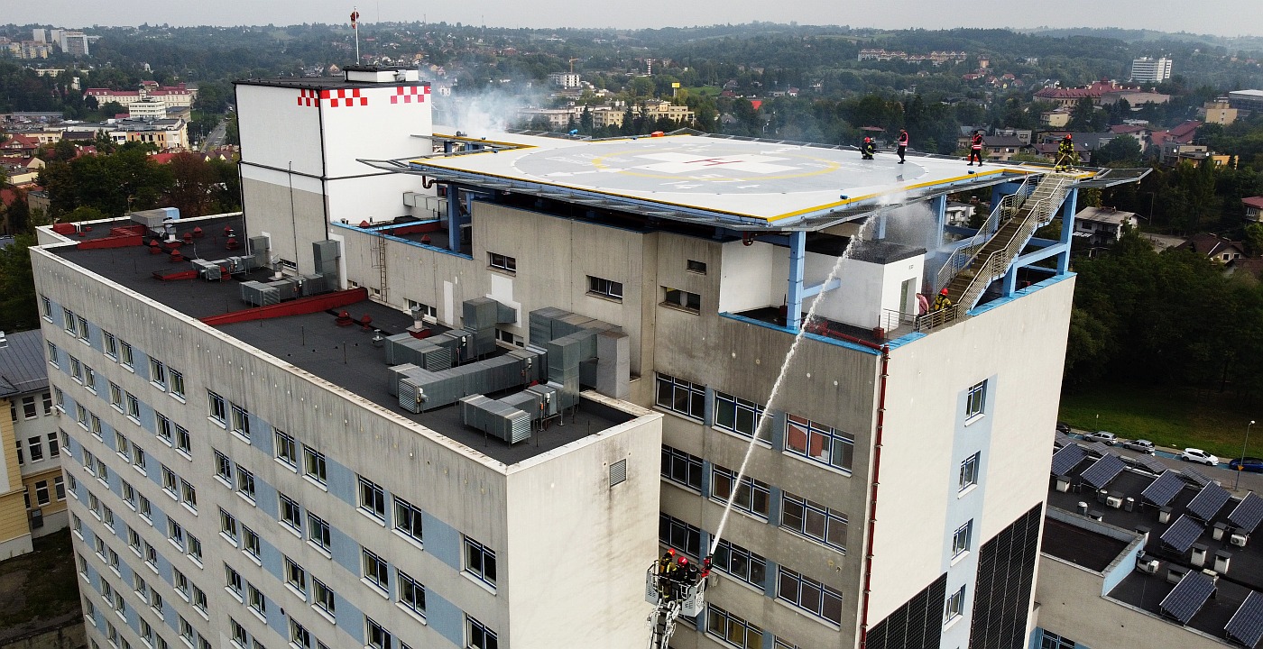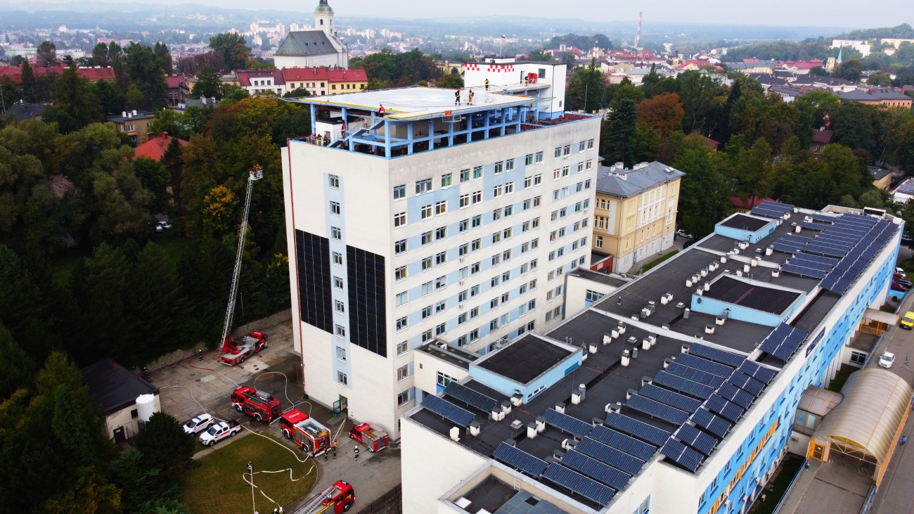 13 września br. na terenie budynku Pawilonu Łóżkowego Szpitala Śląskiego w Cieszynie odbyły się ćwiczenia doskonalenia zawodowego dla funkcjonariuszy PSP oraz wyznaczonych OSP z terenu miasta Cieszyn.