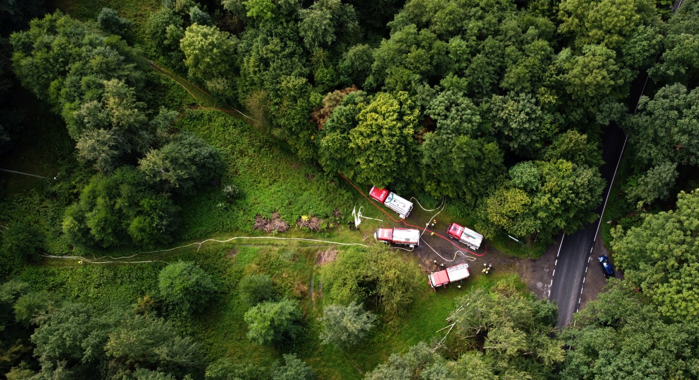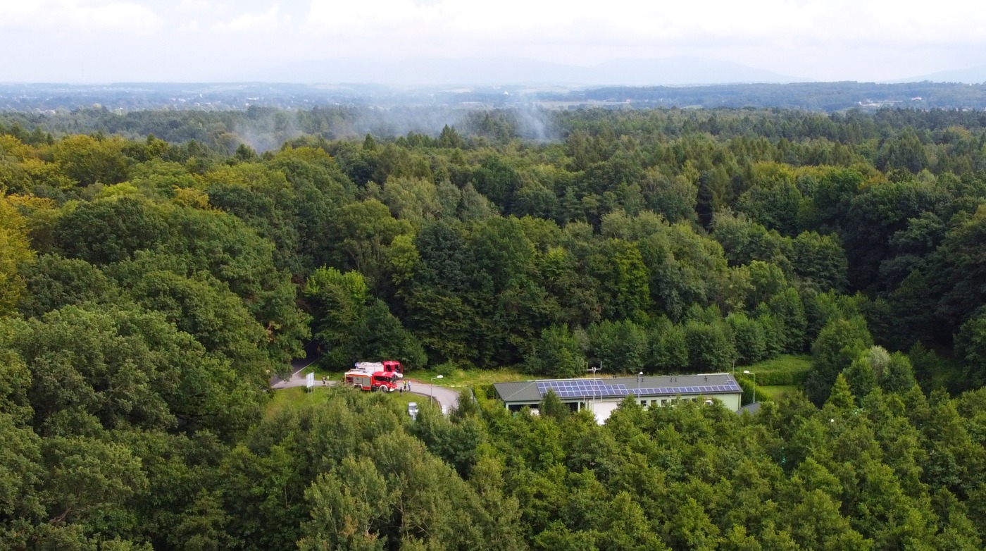 W związku z długotrwały okresem występowania wysokiej temperatury na południu kraju oraz licznymi pożarami lasów, na terenie powiatu cieszyńskiego straż pożarna została postawiona w stan gotowości. W godzinach popołudniowych do Stanowiska Kierowania Komendanta Powiatowego PSP w Cieszynie z siedzibą w Ustroniu wpływa zgłoszenie od rowerzysty, iż widzi dym wydobywający się z lasu na trasie rowerowej w Chybiu prowadzącej od oczyszczalni ścieków. Z informacji jaką przekazał dyżurnemu stanowiska kierowania w Cieszynie, powierzchnia pożaru może sięgać ok. 40 arów.