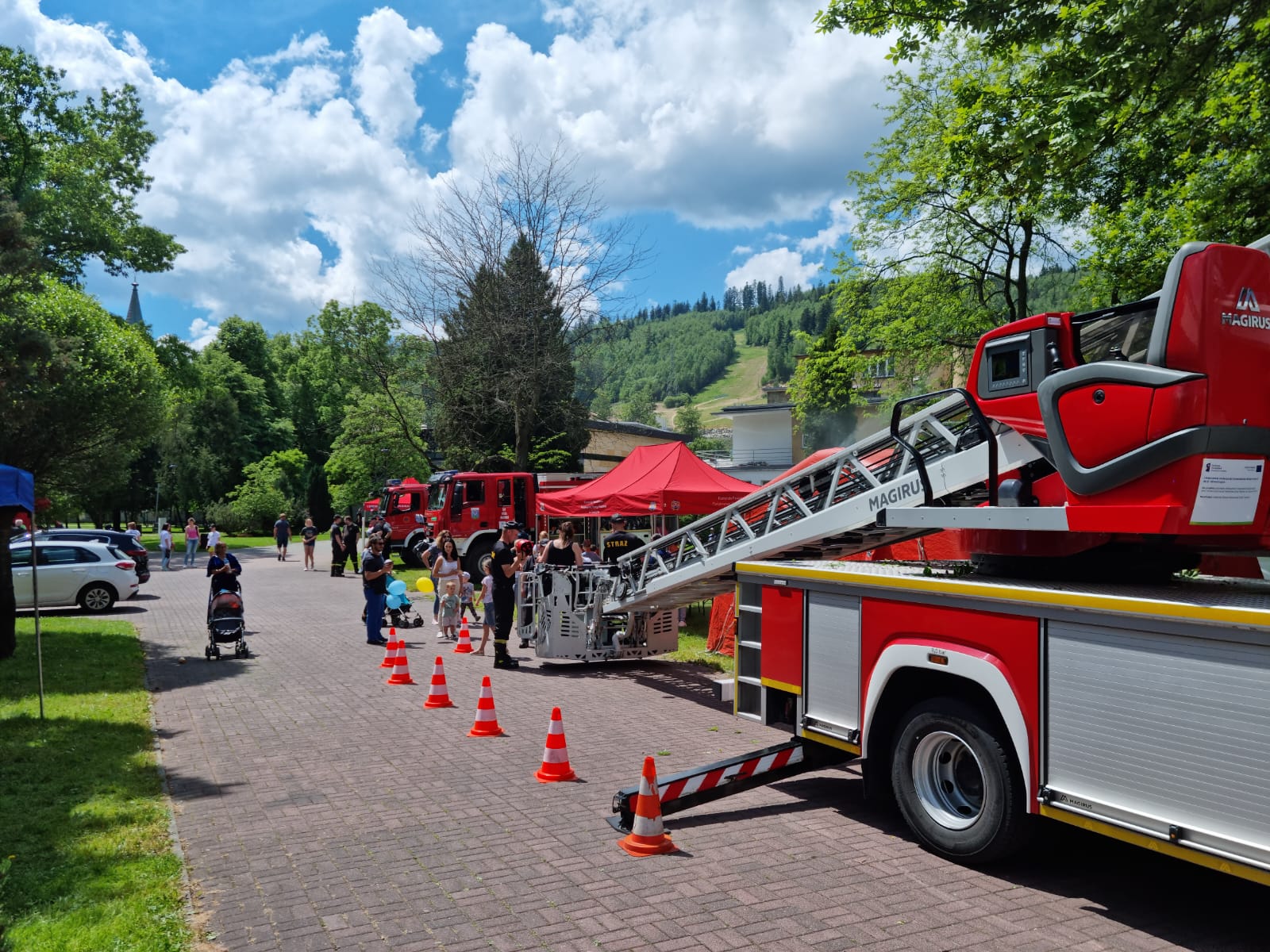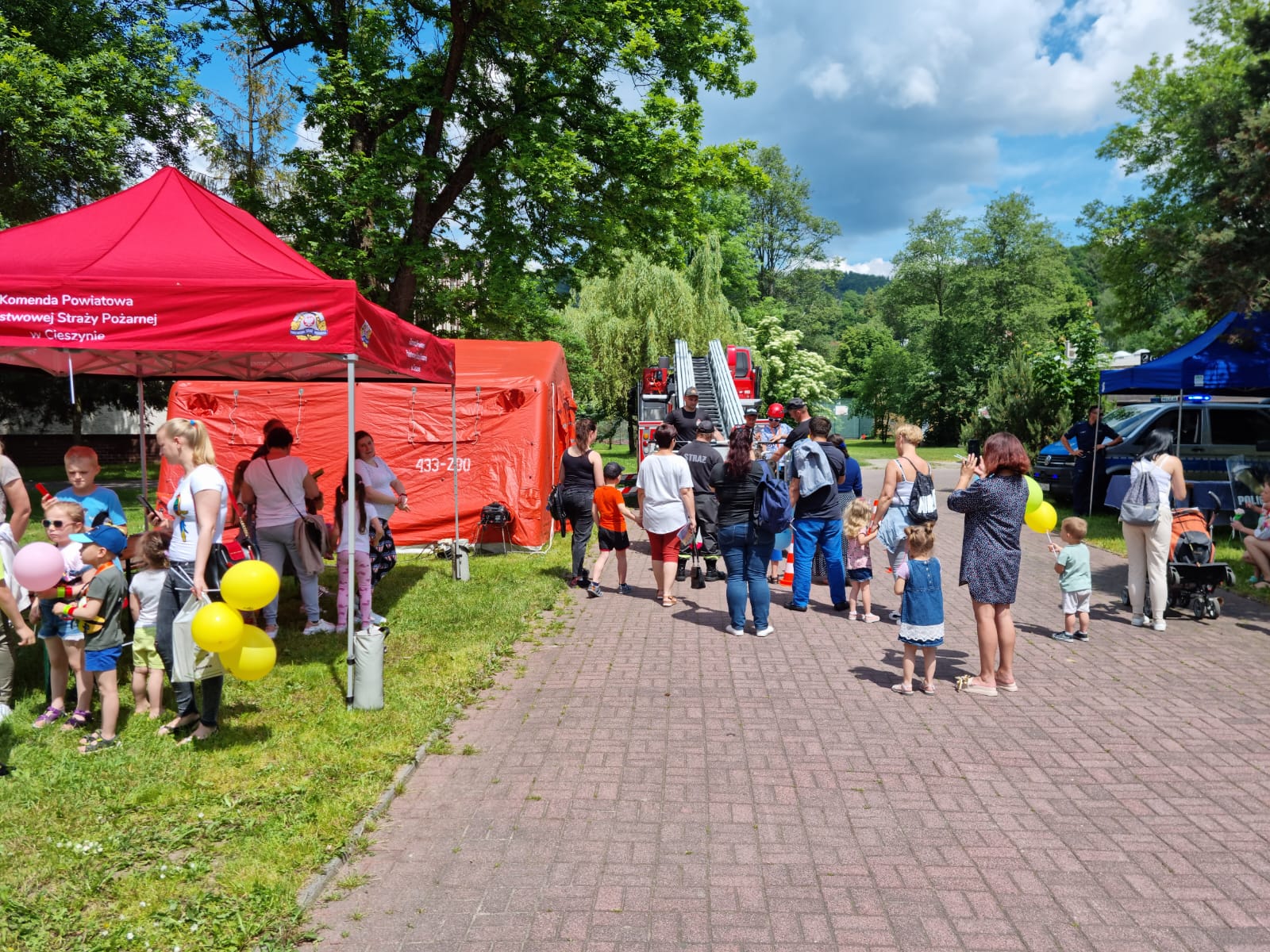 Podczas imprezy strażacy z powiatu cieszyńskiego zaprezentowali sprzęt pożarniczy, samochody bojowe oraz zorganizowali pokazy ratownictwa wysokościowego przy użyciu drabiny mechanicznej. Dodatkową atrakcją była możliwość sprawdzenia swojej oreintacji oraz zachowania w namiocie pneumatyczny wypelnionym nieszkodliwym dymem - symulującym realne warunki zadymienia podczas pożaru. Uczestnicy mogli również podszkolić umiejętności z zakresu udzielania pierwszej pomocy przedmedycznej, jak również sprawdzić się w manewrowaniu wężem pożarniczym oraz operowaniu prądem wodnym.