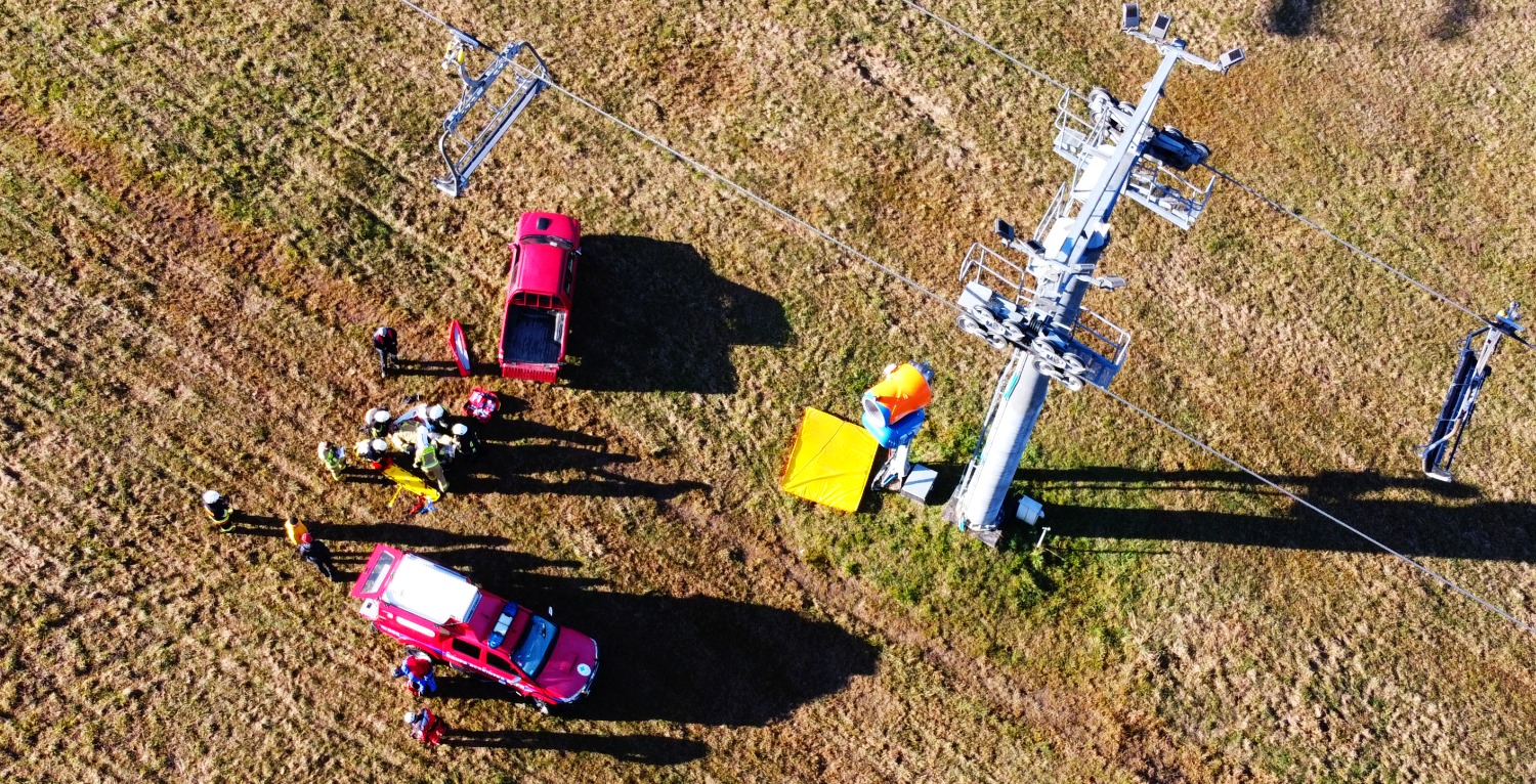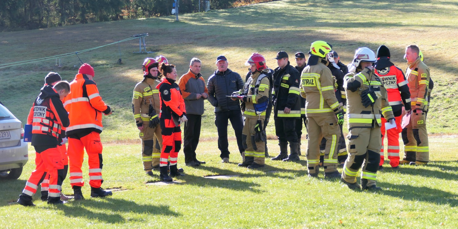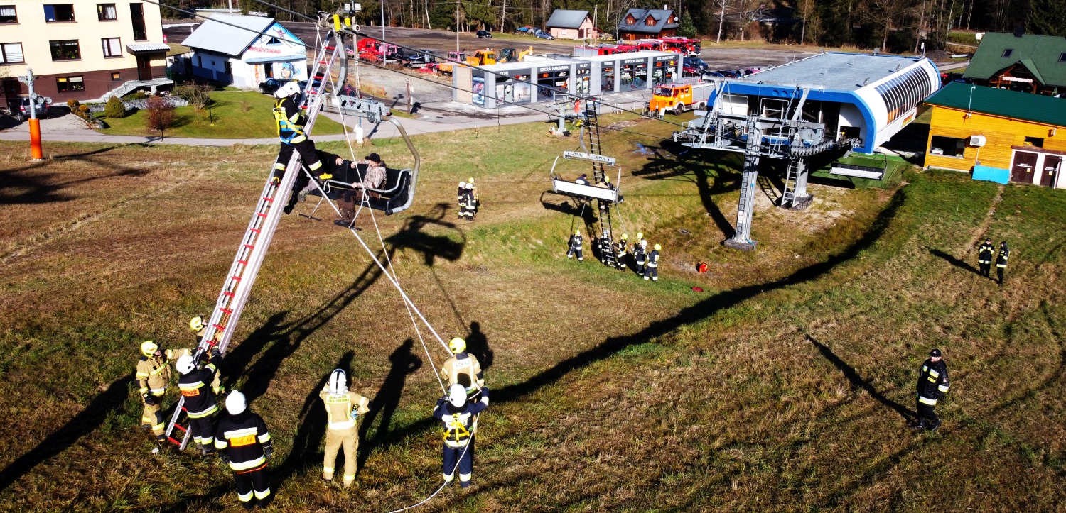 10 listopada w Istebnej na obiekcie "Kolei linowej Złoty Groń" odbyły się wspólne ćwiczenia służb ratunkowych z zakresu doskonalenia działań ratowniczych na obiektach kolejek linowych.
