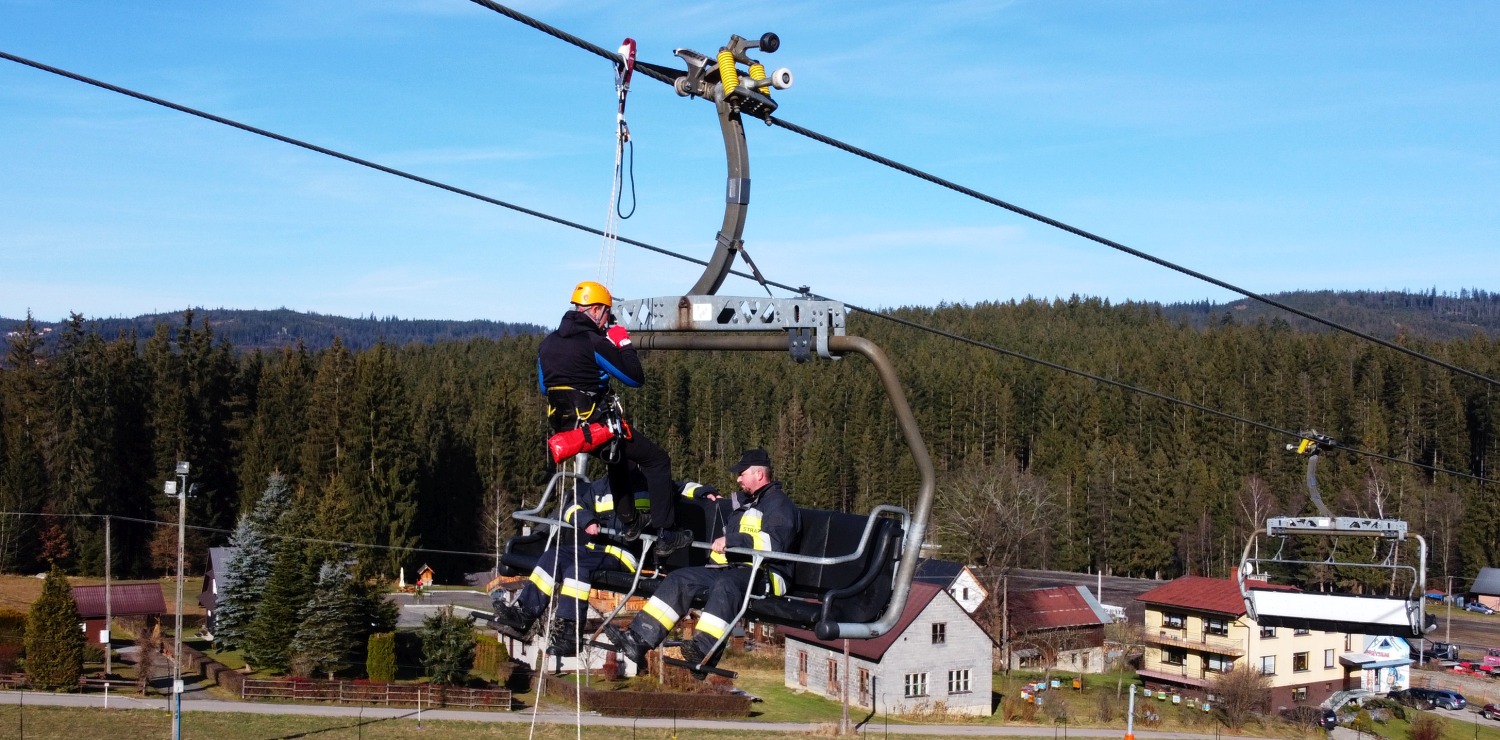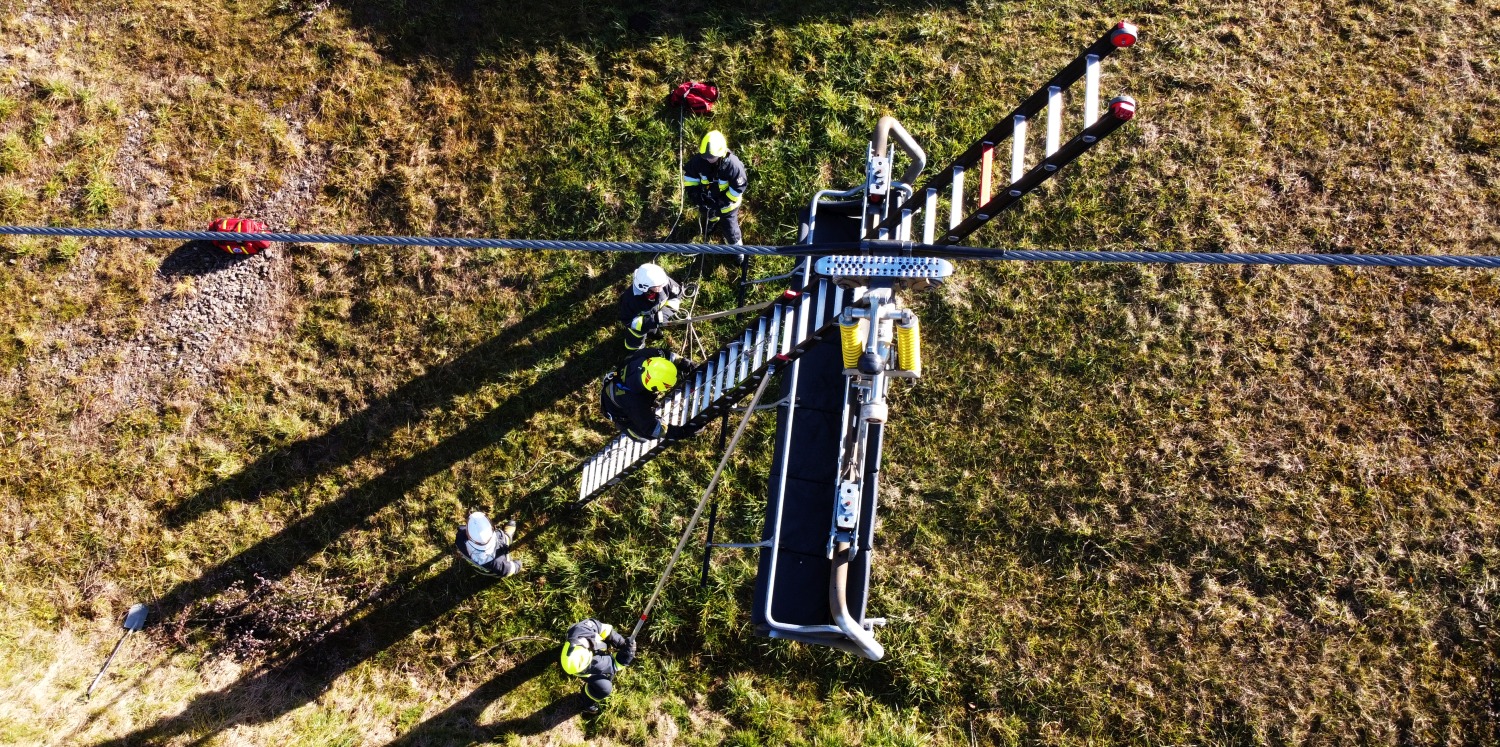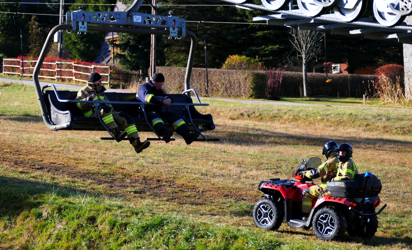 10 listopada w Istebnej na obiekcie "Kolei linowej Złoty Groń" odbyły się wspólne ćwiczenia służb ratunkowych z zakresu doskonalenia działań ratowniczych na obiektach kolejek linowych.