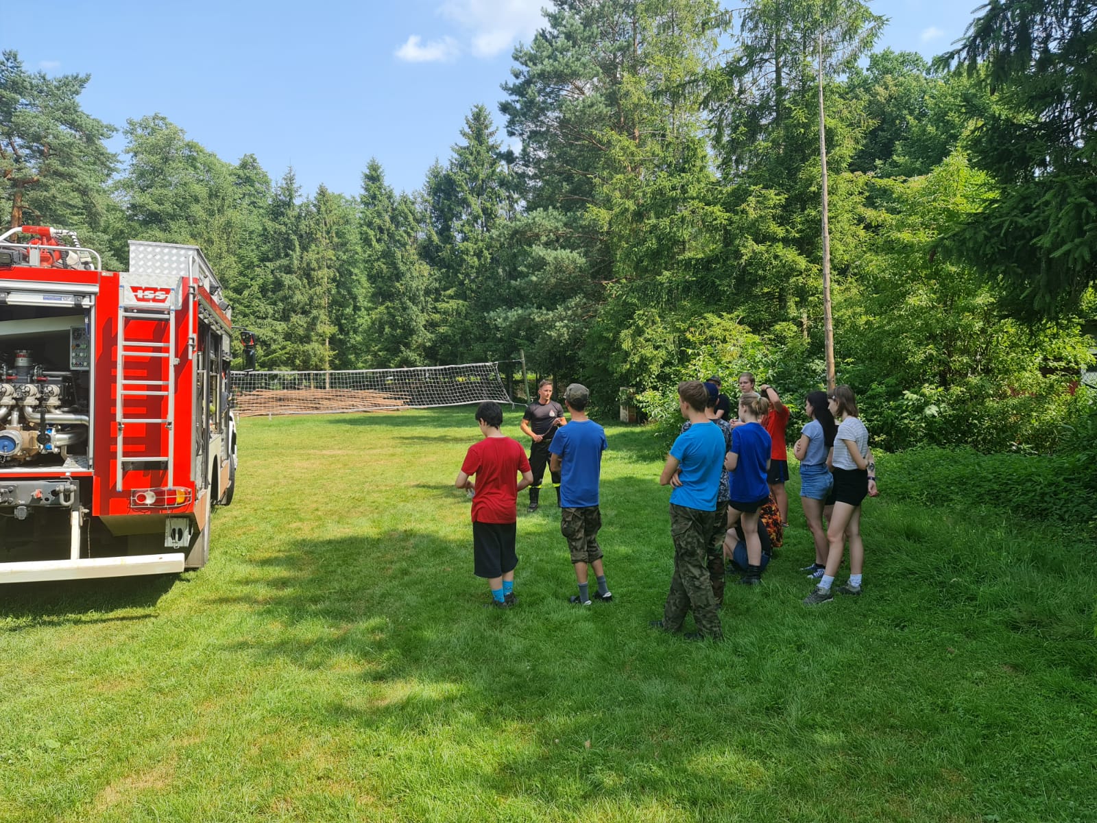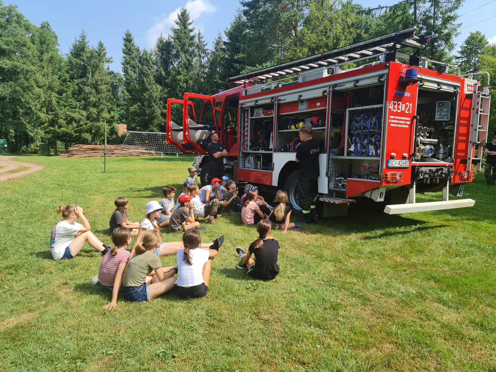 Strażacy z Komendy Powiatowej Państwowej Straży Pożarnej w Cieszynie systematycznie odwiedzają harcerzy wypoczywających na terenie Stanicy Obozowej "Lipowiec" w Ustroniu.
