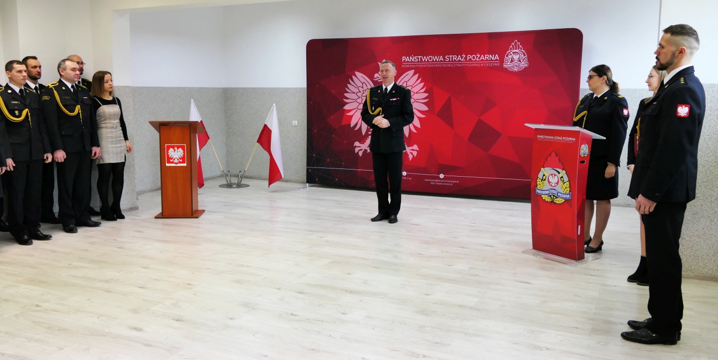 Uroczystego wręczenia aktu mianowania dokonał st. bryg. Damian Legierski - Komendant Powiatowy Państwowej Straży Pożarnej w Cieszynie.