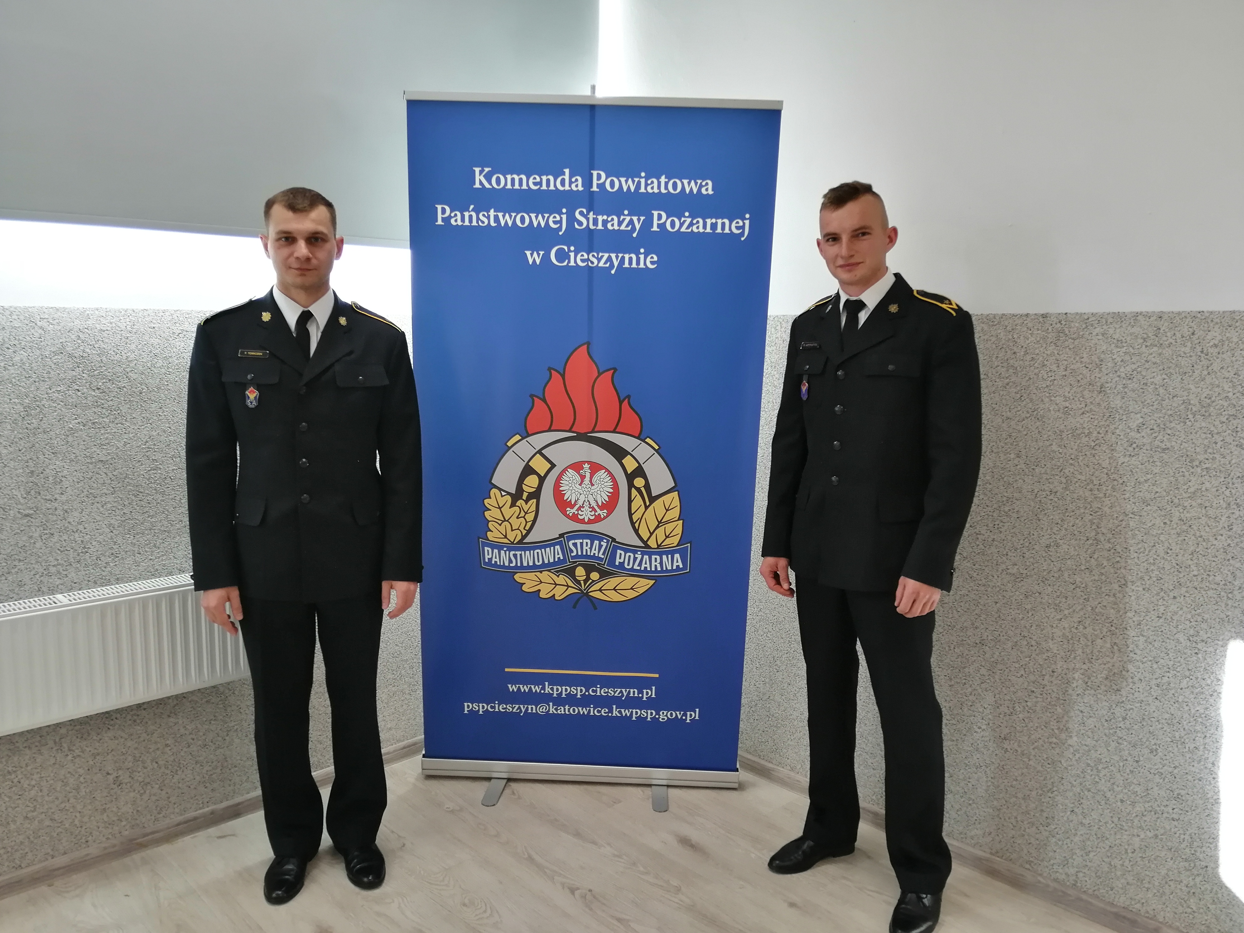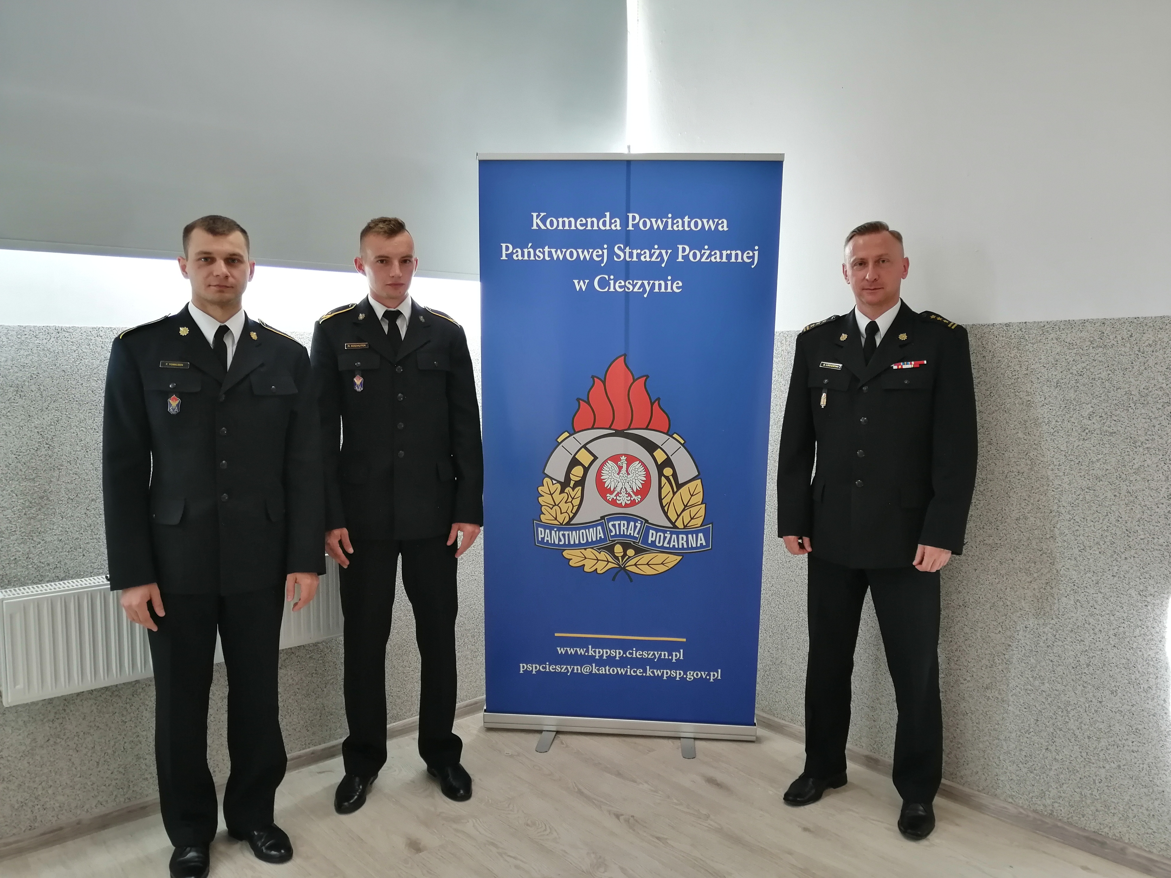 29 października br. Komendant Powiatowy PSP w Cieszynie st. bryg. Damian Legierski oficjalnie powitał mł. asp. Roberta Kochutka oraz asp. Filipa Tomiczka w szeregach Komendy Powiatowej PSP w Cieszynie.