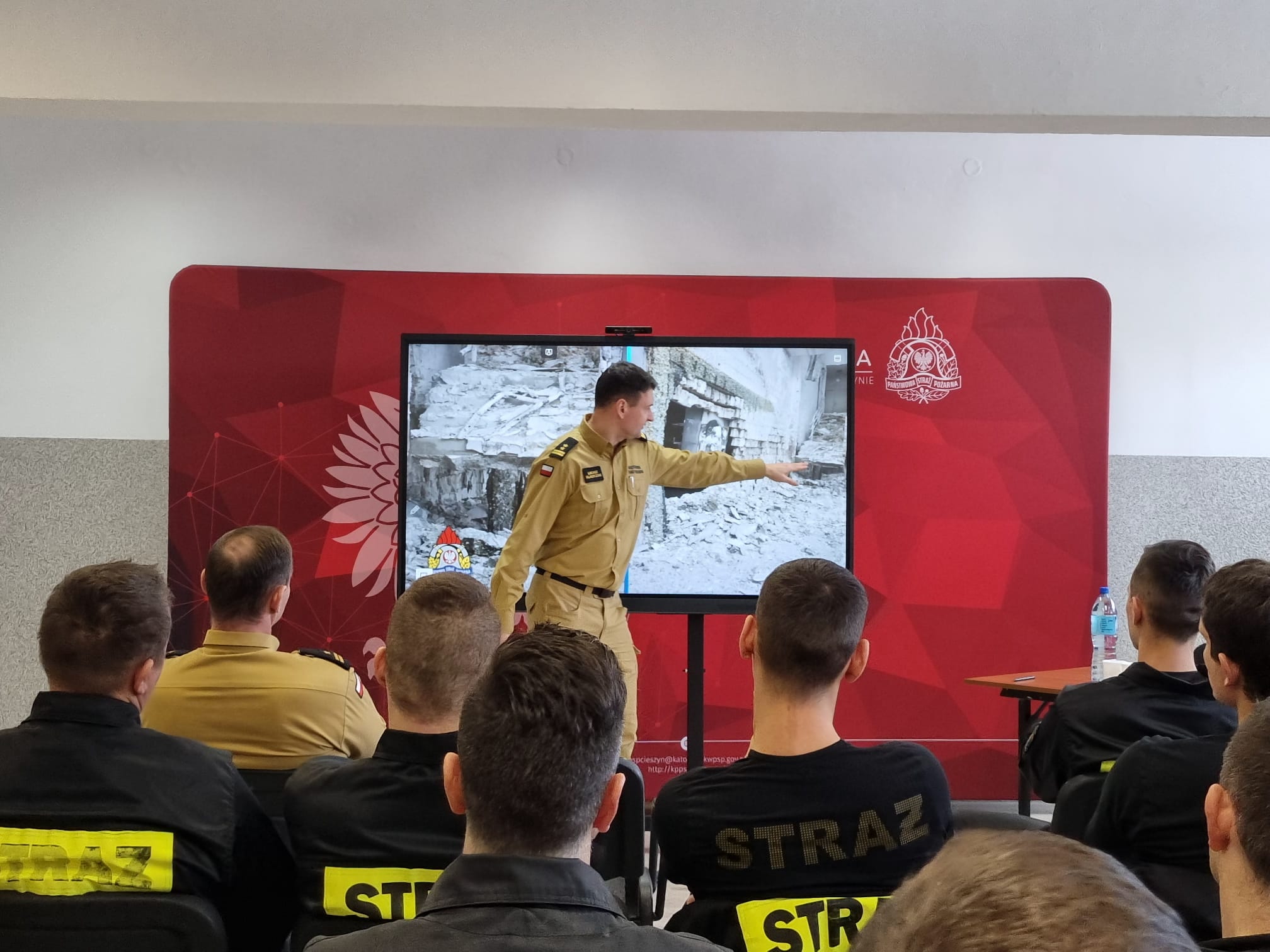Pierwszym prelegentem był Dowódca Jednostki Ratowniczo-Gaśniczej w Cieszynie bryg. Łukasz Błaszczak. Tematem prezentacji było „Zachowanie się konstrukcji obiektów budowlanych w warunkach pożarowych", podczas którego:
