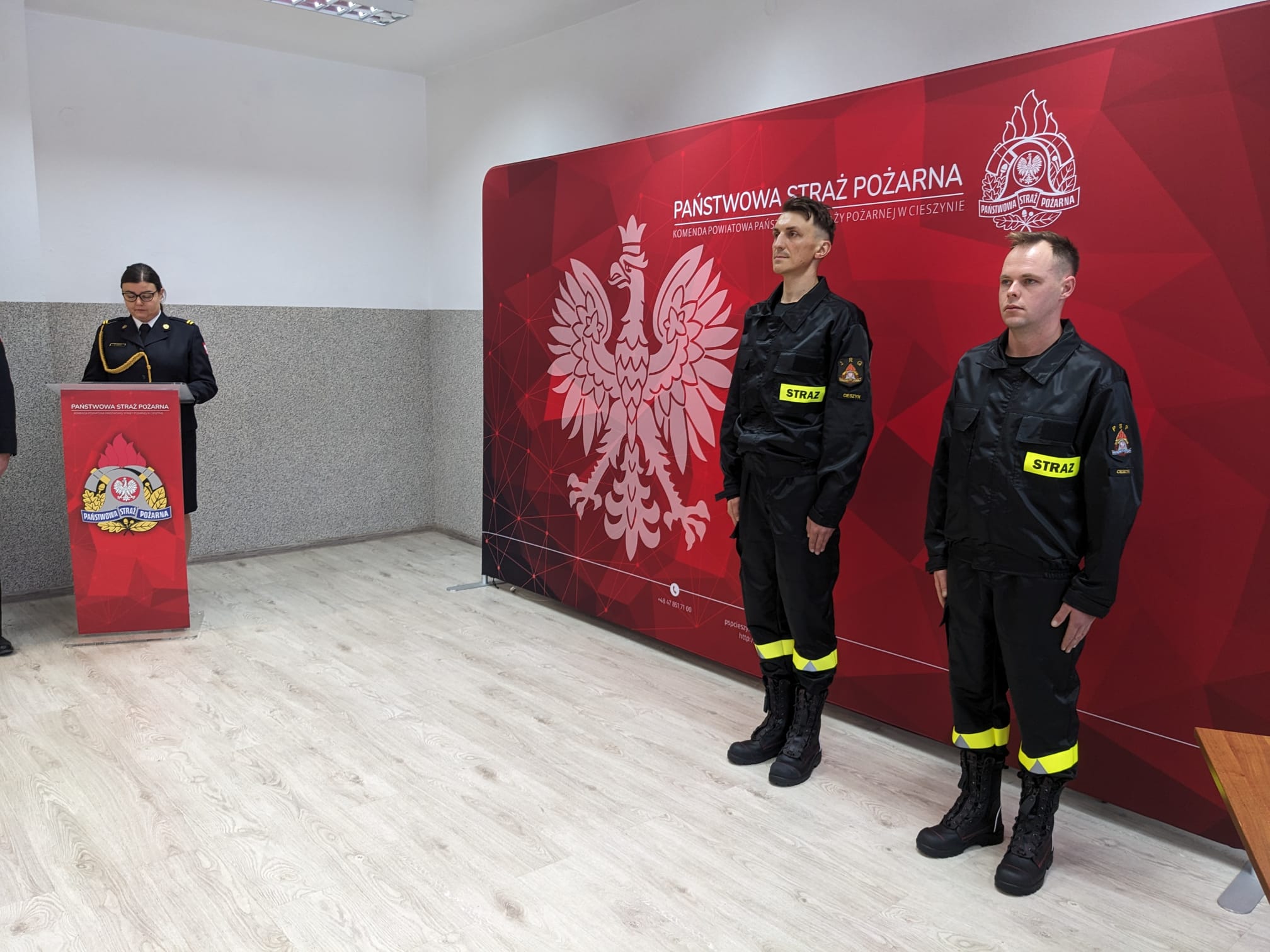 Ślubowanie przyjął Komendant Powiatowy PSP w Cieszynie mł. bryg. Michał Pokrzywa, w obecności kadry dowódczej oraz funkcjonariuszek i funkcjonariuszy komendy.