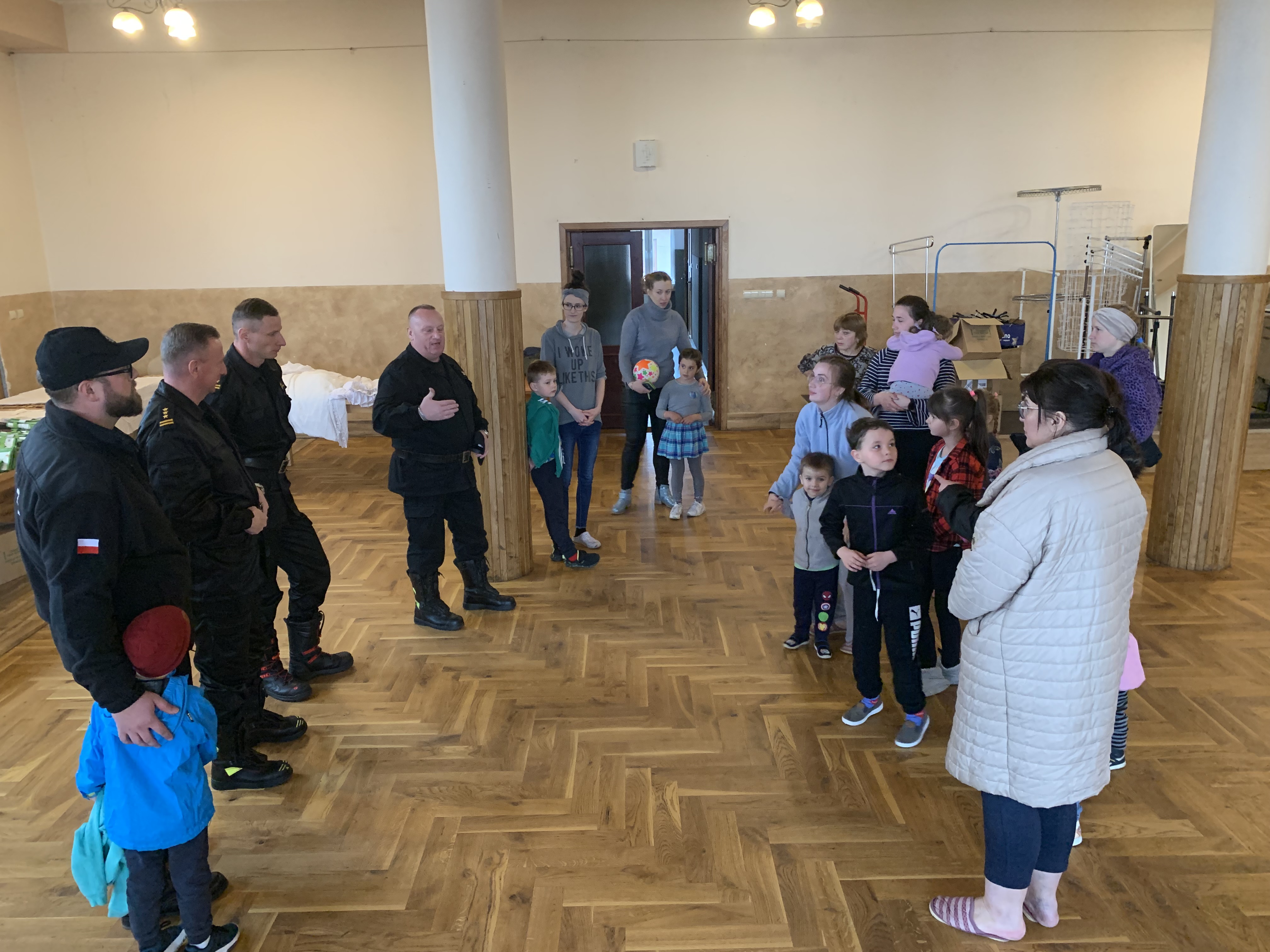 Dzisiaj tj. 15 kwietnia w godzinach przedpołudniowych Komendant Powiatowy PSP w Cieszynie st. bryg. Damian Legierski wraz z przedstawicielami komendy (mł. bryg. Michałem Pokrzywą, st. kpt. Adrianem Zygmańskim) odwiedzili uchodźców z Ukrainy, którzy przebywają w OSP Koniaków Centrum.