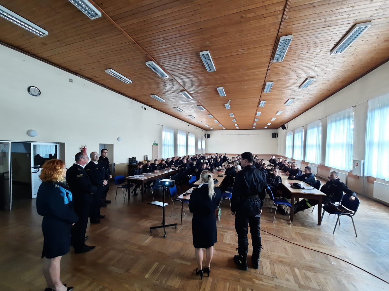Szkolenie otwarli: Zastępca Komendanta Powiatowego PSP w Cieszynie bryg. Ryszard Kukuczka oraz Zastępca Komendanta Powiatowego PSP w Pszczynie bryg. Radosław Radkowski. Zajęcia były prowadzone przez funkcjonariuszy z Komendy Wojewódzkiej PSP w Katowicach bryg. Agnieszkę Wąchała – głównego specjalistę ds. BHP oraz mł. asp. Izabelę Kurzeja – instruktor z Ośrodka Szkolenia KW PSP w Katowicach. Szkolenie stanowiskowe przeprowadził mł. bryg. Łukasz Błaszczak – dowódca JRG nr 1 PSP w Cieszynie.